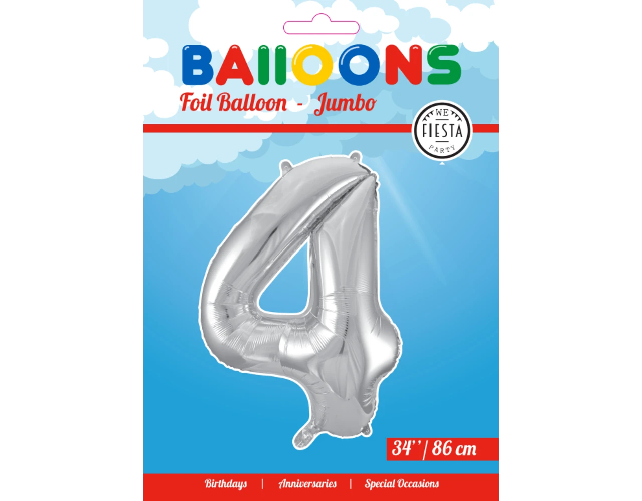 Verpakkingsinhoud: Folie Ballon Cijfer 4 Zilver XL 86cm leeg