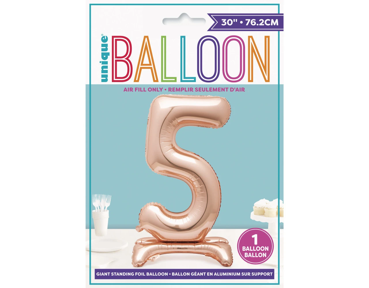 Verpakkingsinhoud: Folie Ballon Cijfer 5 Rosé Goud met standaard 76cm