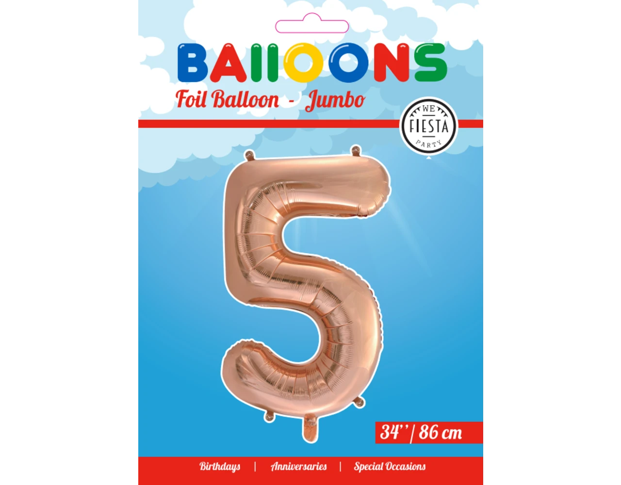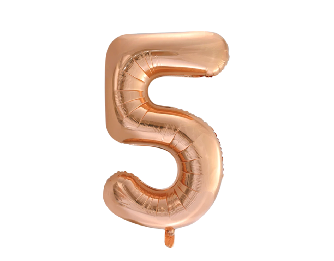 Verpakkingsinhoud: Folie Ballon Cijfer 5 Rose Goud XL 86cm leeg