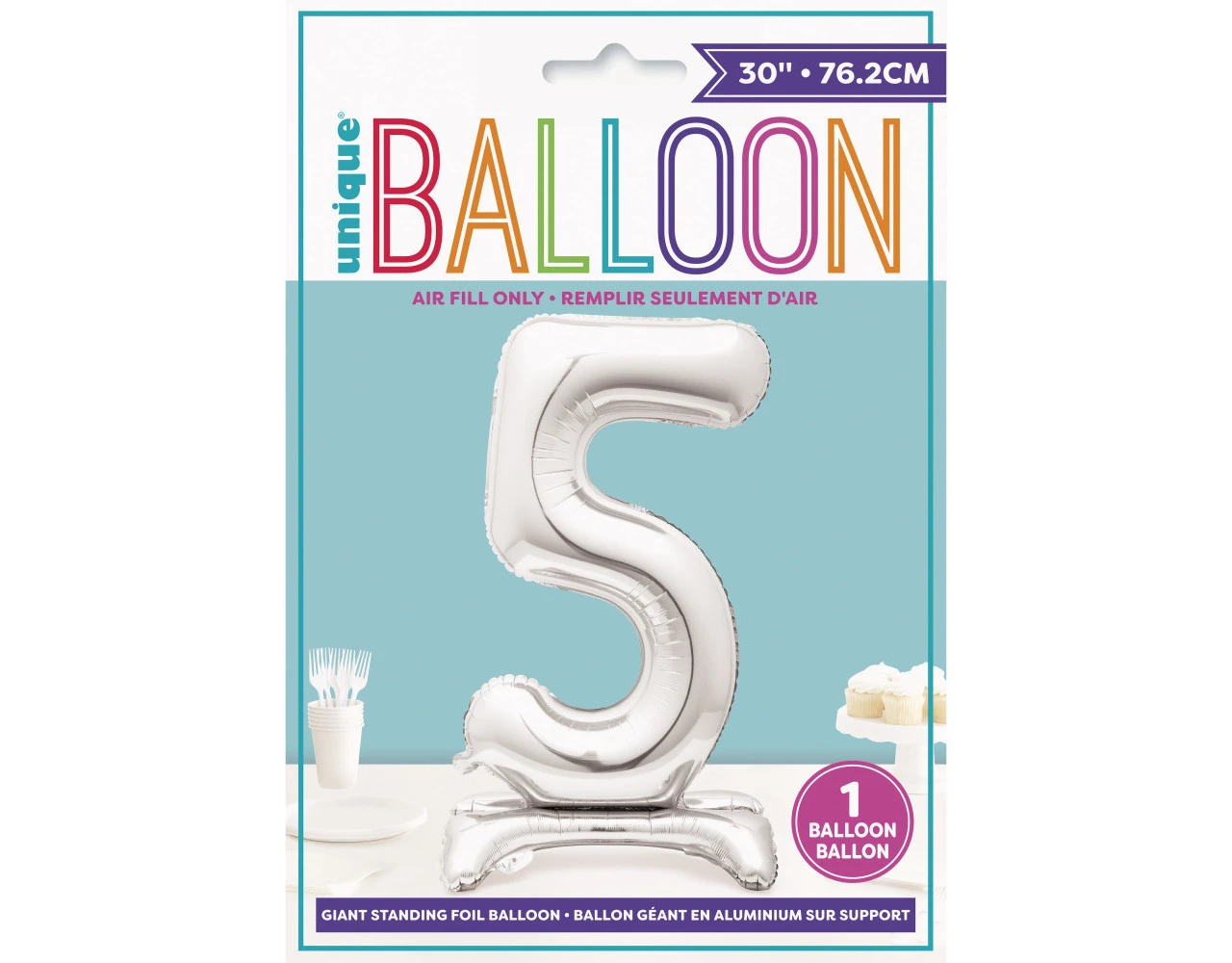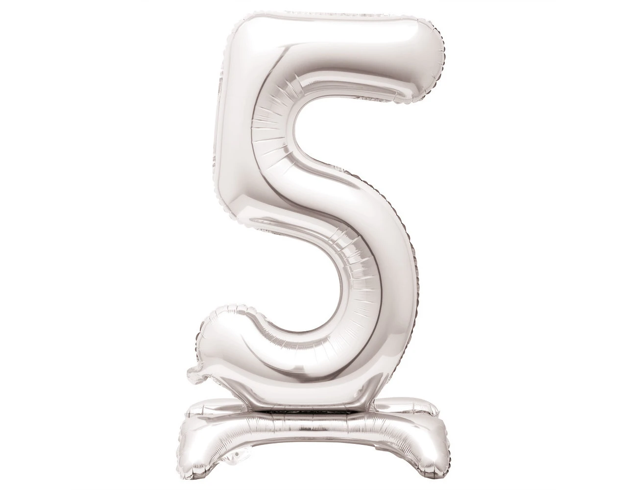 Verpakkingsinhoud: Folie Ballon Cijfer 5 Zilver met standaard 76cm