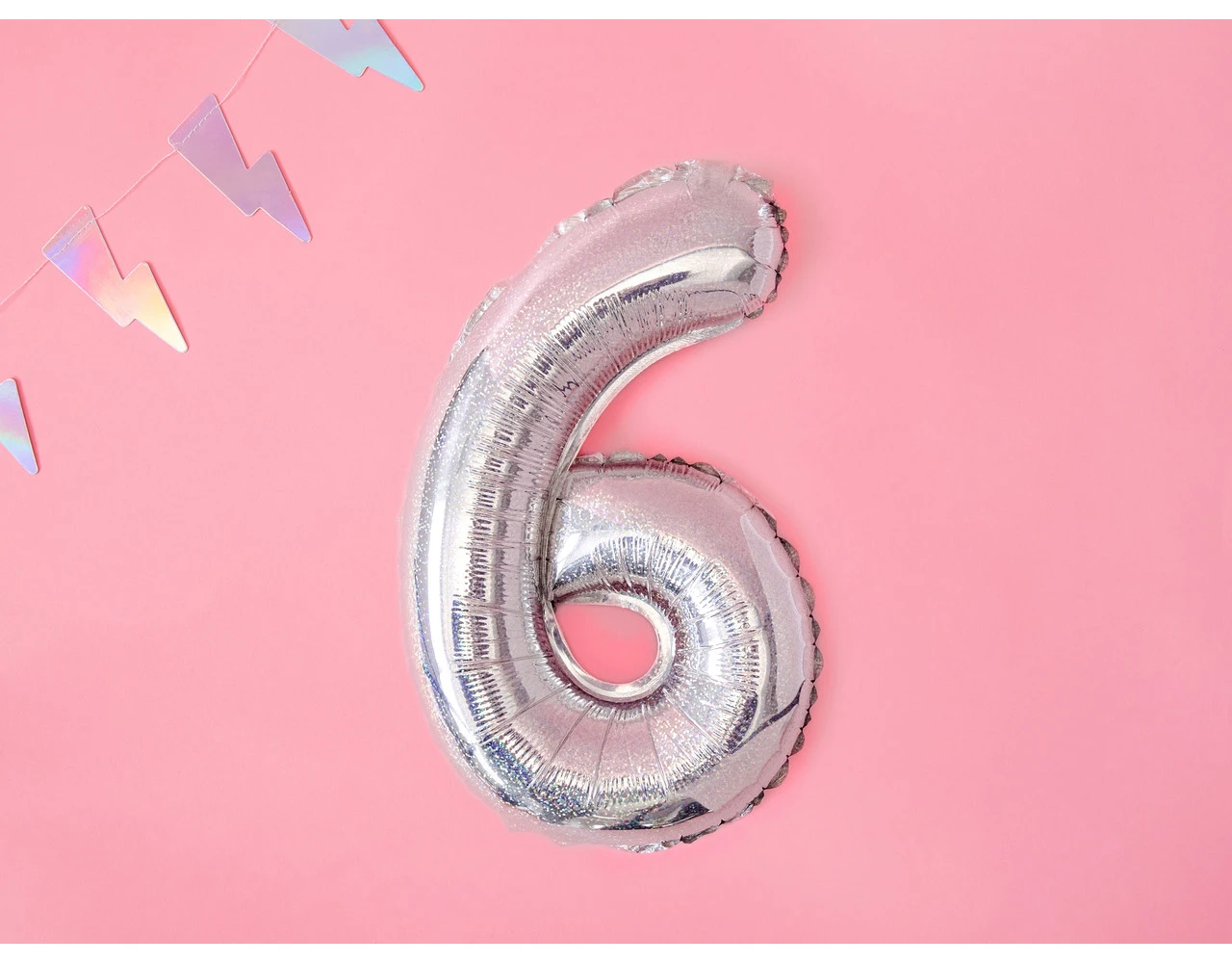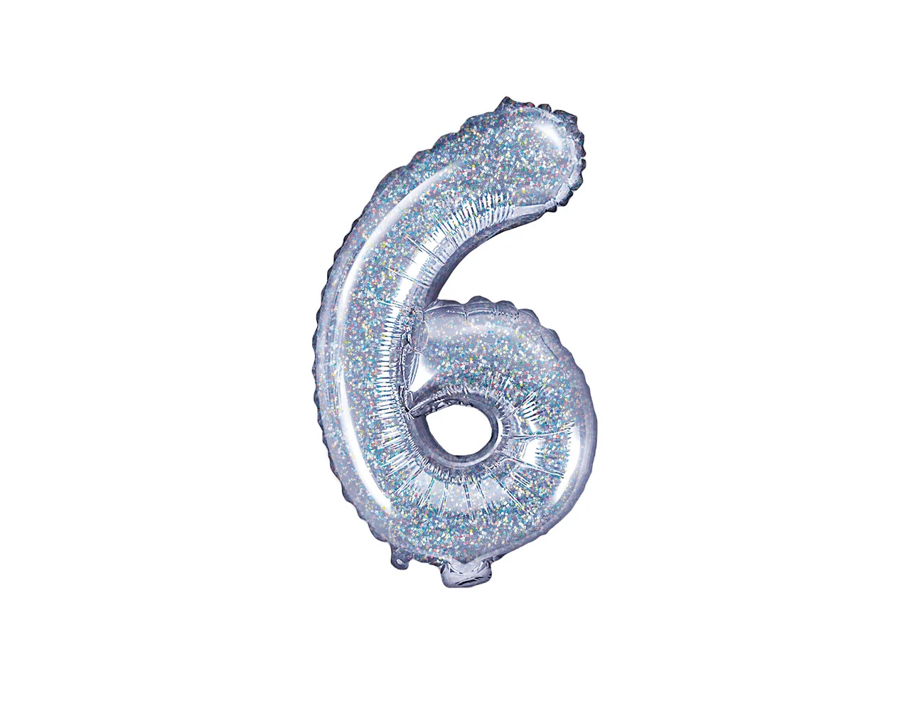 Verpakkingsinhoud: Folie Ballon Cijfer 6 Holografisch 35cm