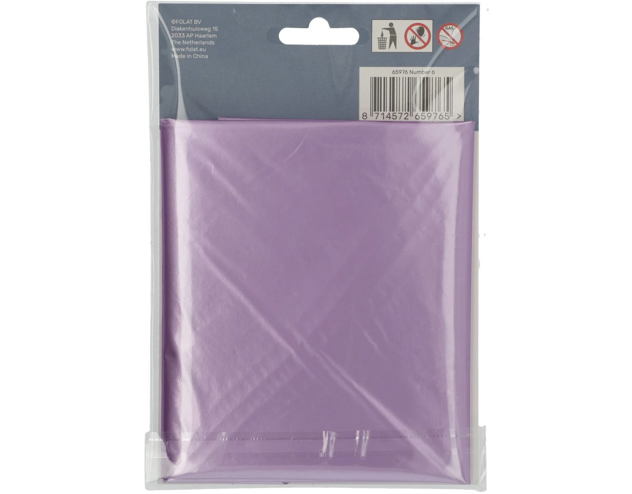 Folieballon Cijfer 6 Paars Metallic Mat – 86 cm. Inhoud: 1 folieballon. Kleur: Paars. Bijvoorbeeld te gebruiken tijdens de volgende feestgelegenheid/feestgelegenheden: Verjaardag, Kinderfeestje en Jubileum. Deze folieballon is 34 inch/86 cm. Het artikel is gemaakt van folie.
