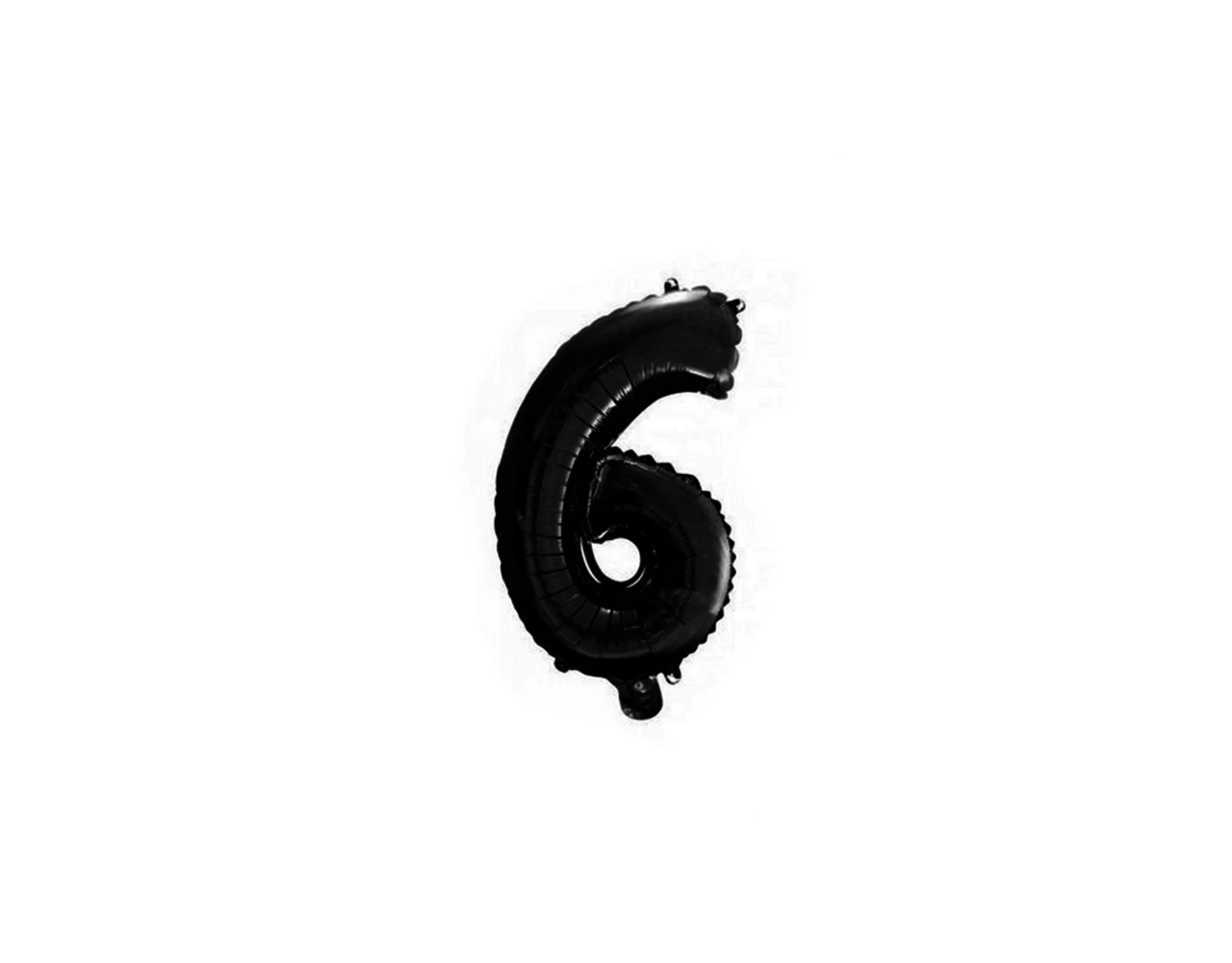 Verpakkingsinhoud: Folie Ballon Cijfer 6 Zwart 41cm met Rietje