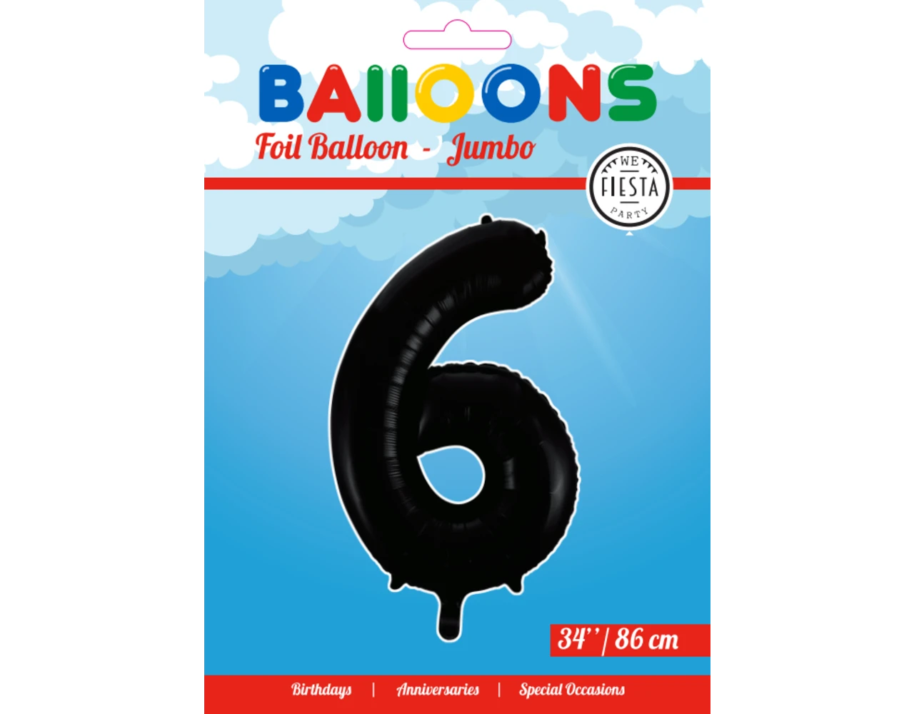 Verpakkingsinhoud: Folie Ballon Cijfer 6 Zwart XL 86cm leeg