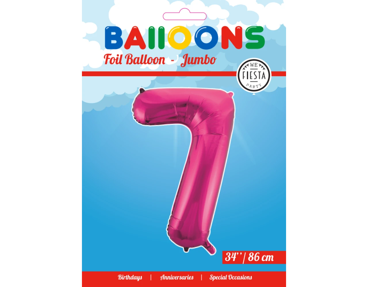 Verpakkingsinhoud: Folie Ballon Cijfer 7 Fuchsia XL 86cm leeg
