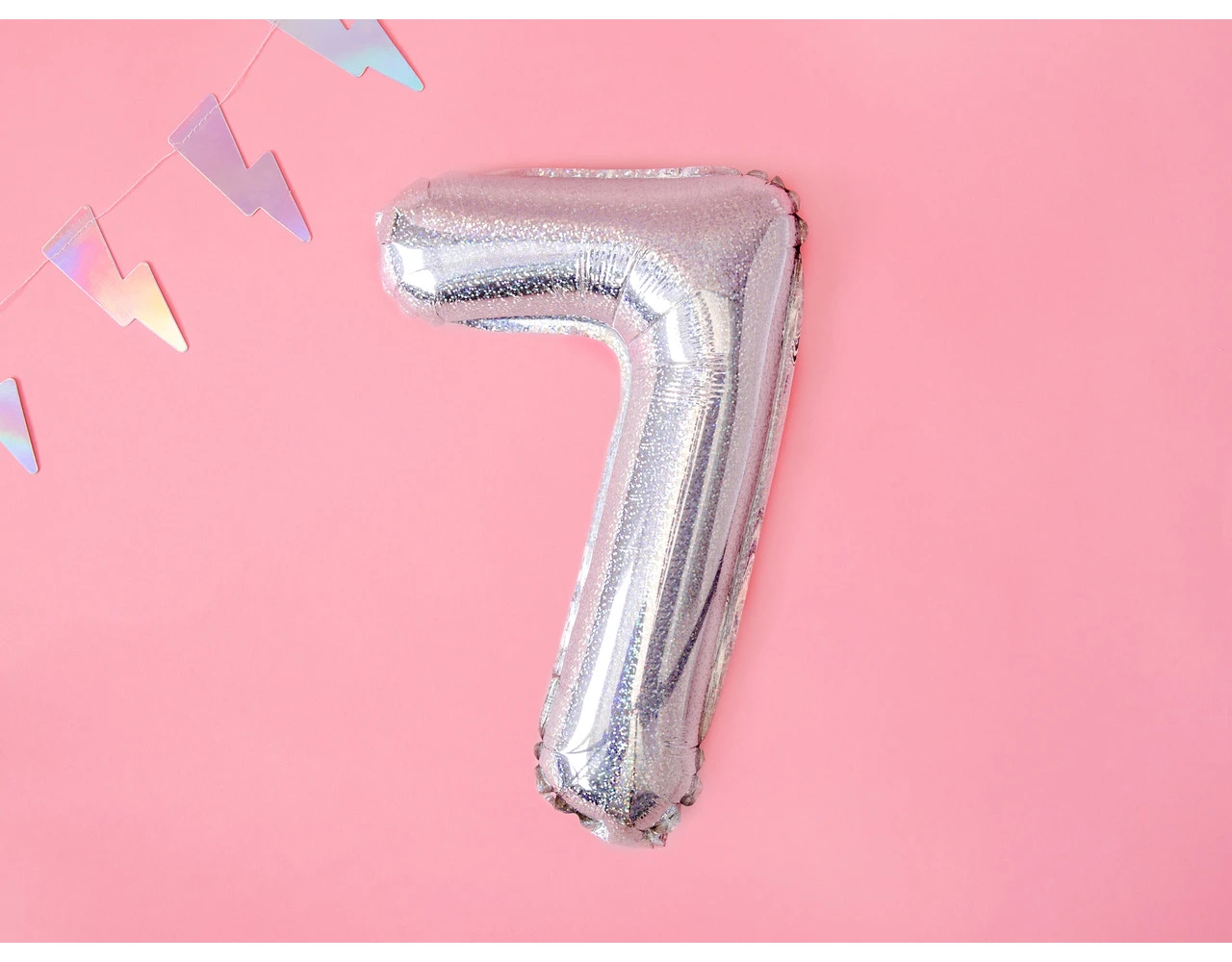 Verpakkingsinhoud: Folie Ballon Cijfer 7 Holografisch 35cm