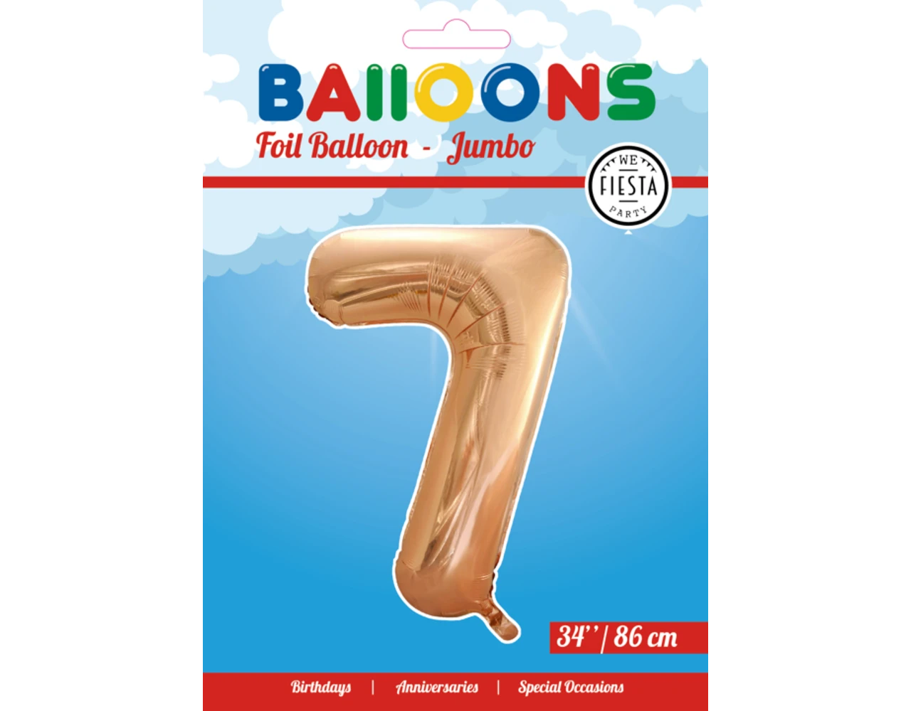 Verpakkingsinhoud: Folie Ballon Cijfer 7 Rose Goud XL 86cm leeg