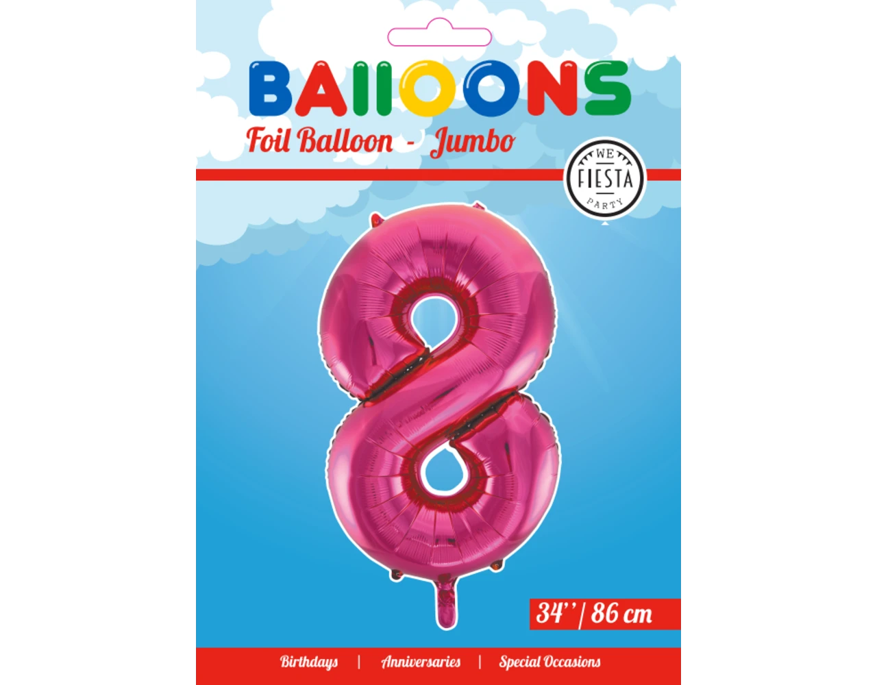 Verpakkingsinhoud: Folie Ballon Cijfer 8 Fuchsia XL 86cm leeg