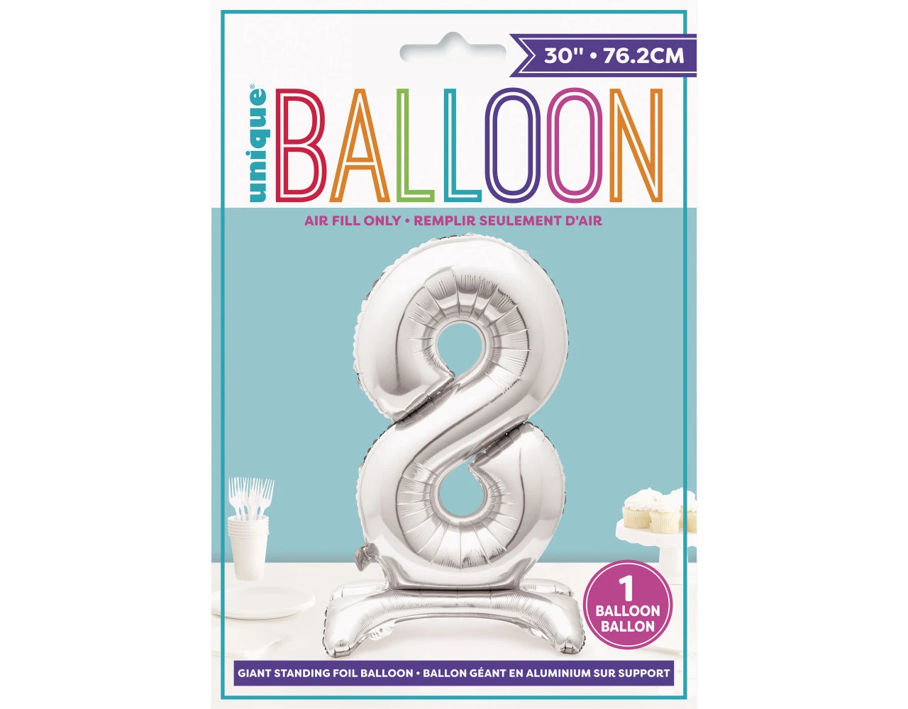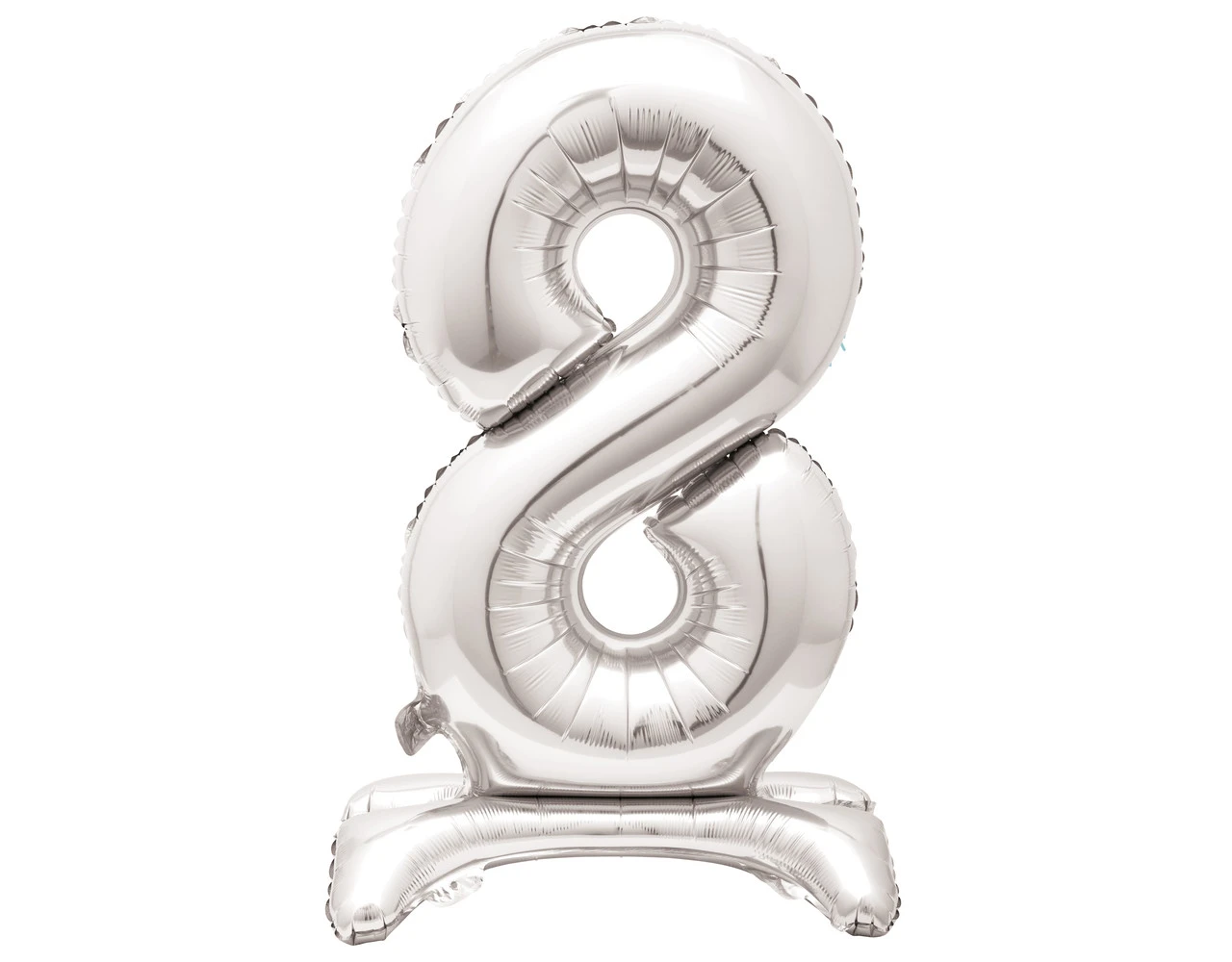 Verpakkingsinhoud: Folie Ballon Cijfer 8 Zilver met standaard 76cm