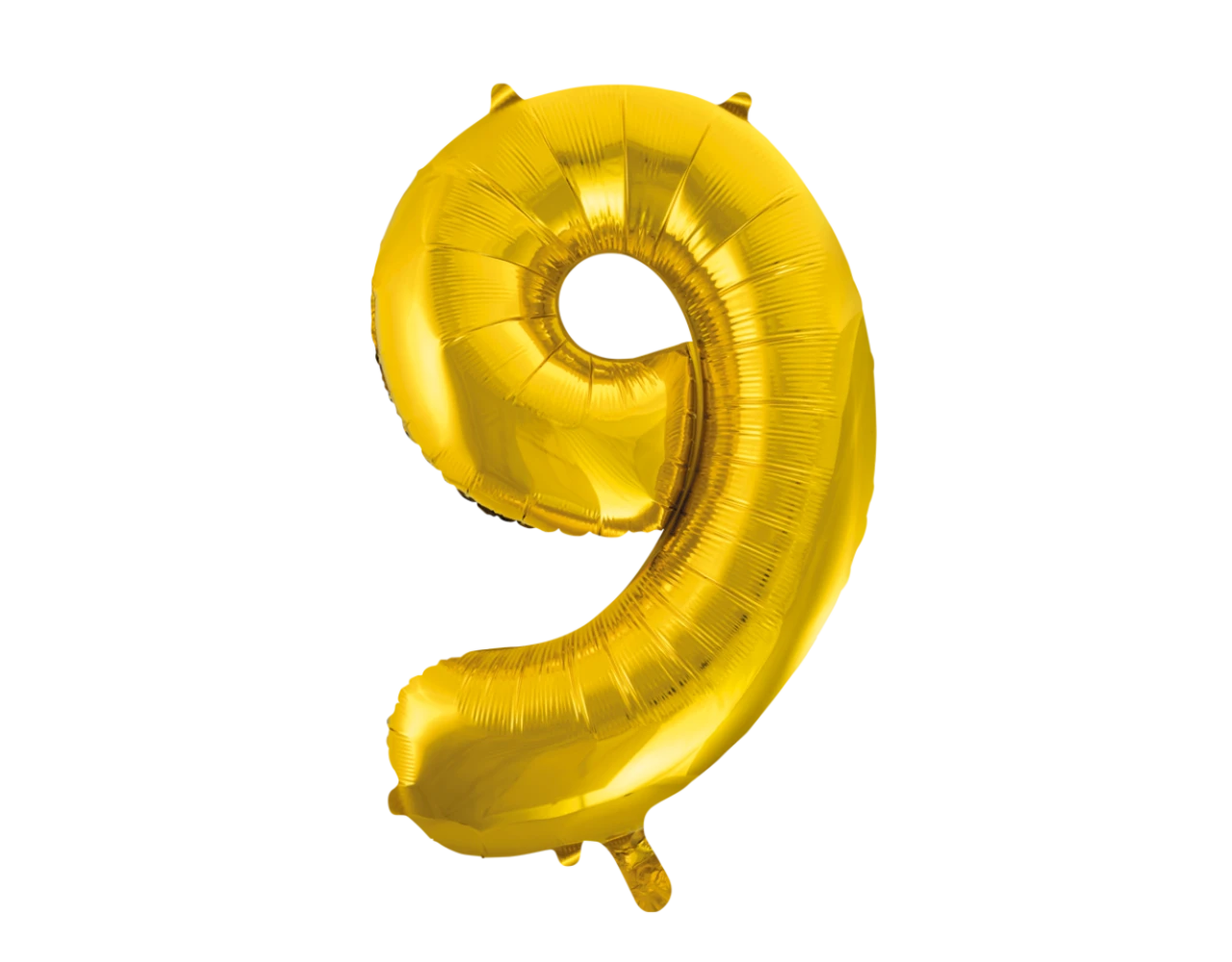 Verpakkingsinhoud: Folie Ballon Cijfer 9 Goud XL 86cm leeg