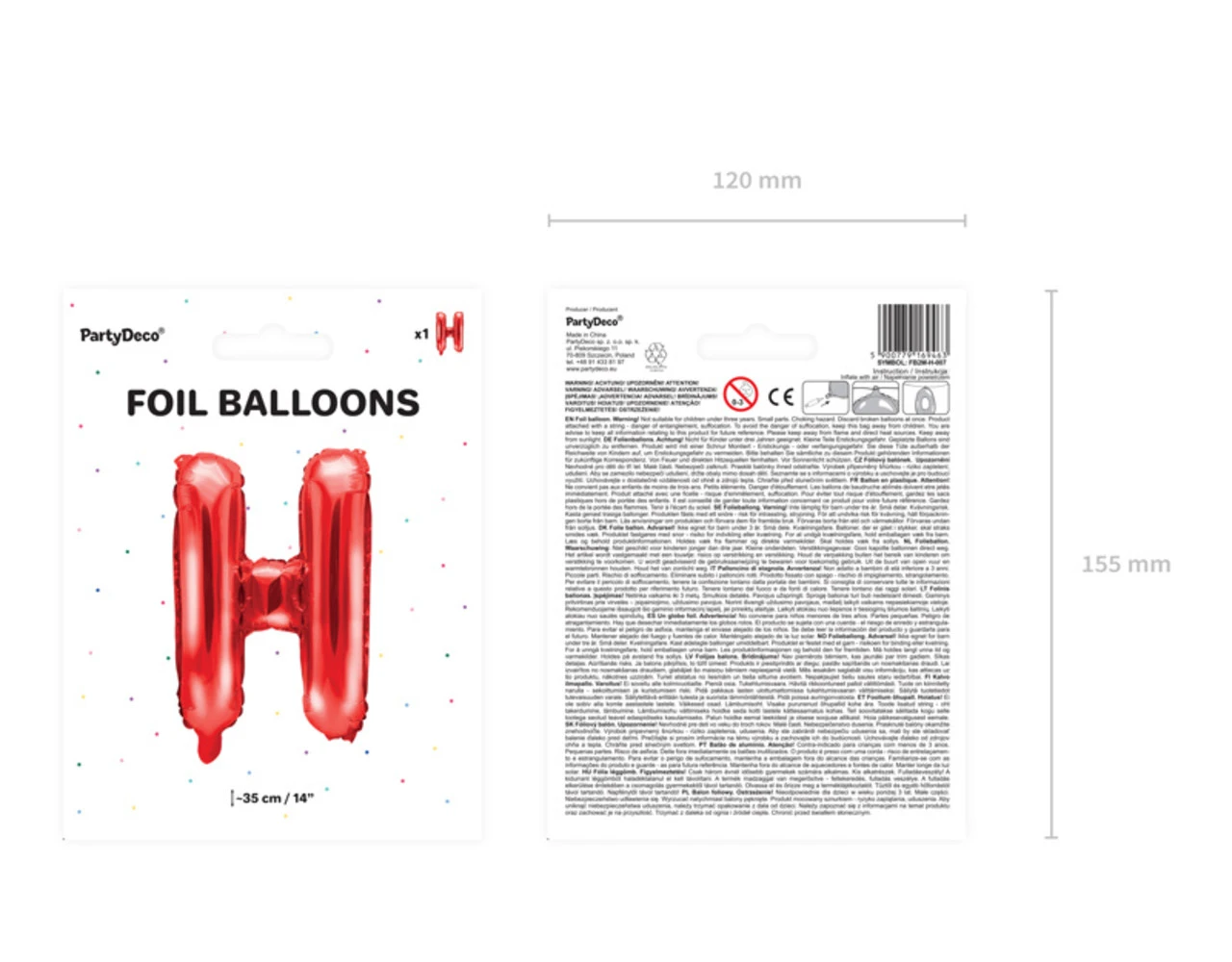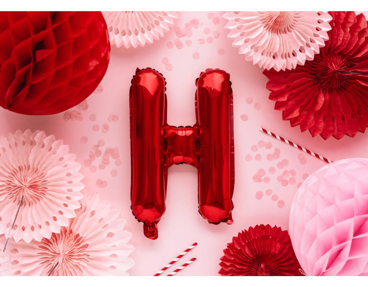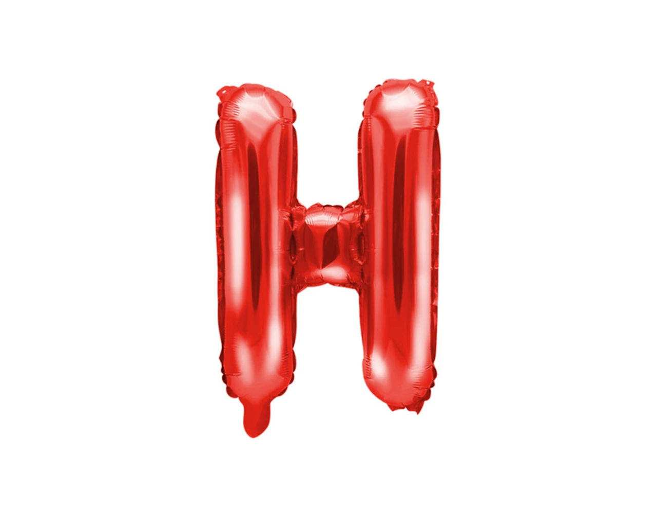 Metallic folie ballon Letter ”H”, rood, grootte voor opblazen ca. 40 cm (16”), hoogte ca. 35 cm (14”). Opblazen met lucht.