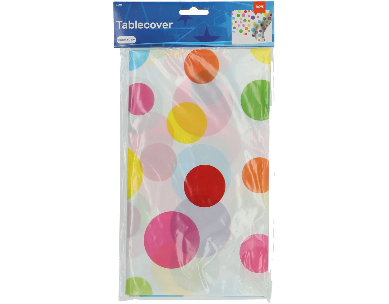 Happy Bday Stippen Tafelkleed – 130x180cm. Inhoud: 1 tafelkleed. Kleur: Meerkleurig. Productthema: Rainbow Dots. Bijvoorbeeld te gebruiken tijdens de volgende feestgelegenheid/feestgelegenheden: verjaardag en kinderfeestje. Het tafelkleed is 130x180cm. Dit tafelkleed is gemaakt van plastic.