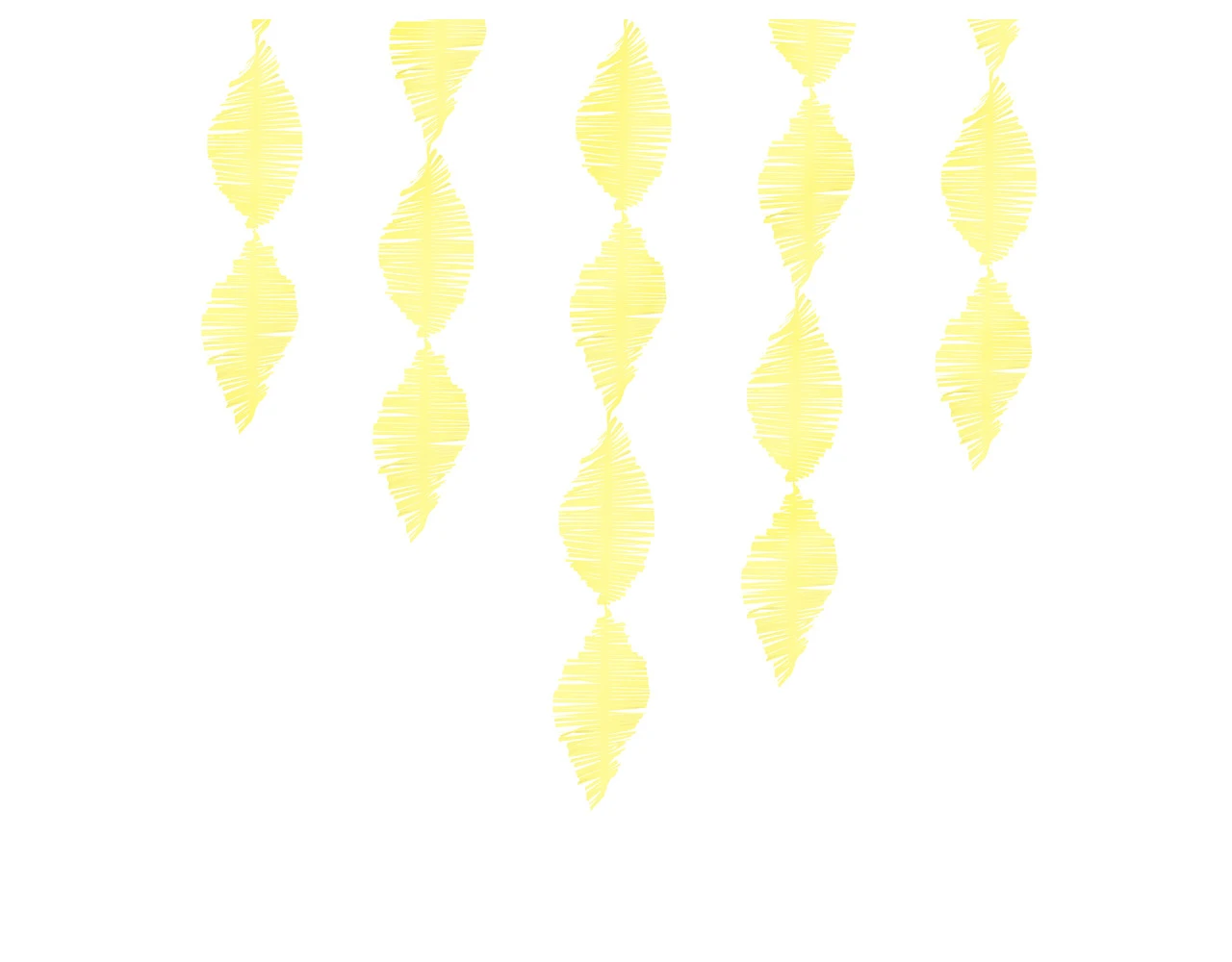 Inhoud: Crêpepapier rand slinger, geel, breedte ca. 15 cm, lengte ca. 3 m.