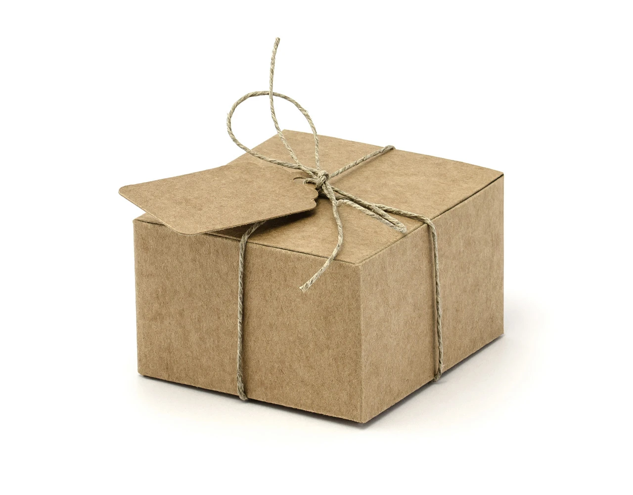 Inhoud: Dozen met markeringen, van kraftpapier, set bevat 10 dozen (afmetingen na montage ong. 6 x 5,5 x 3,5 cm), 10 labels (grootte ong. 2 x 4,5 cm) en ca. 6,5 m touw. (1 PKT / 10 st.)