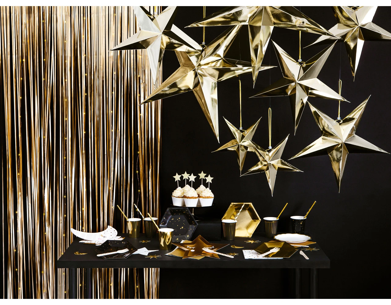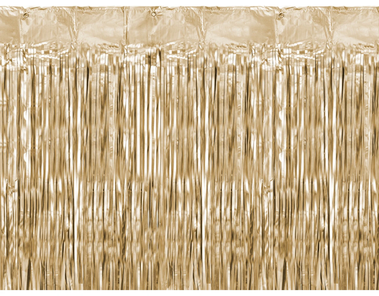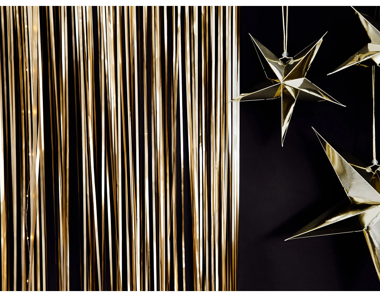 Inhoud: Party gordijn in goud metallic kleur, breedte ca. 90 cm, hoogte ca. 250 cm.