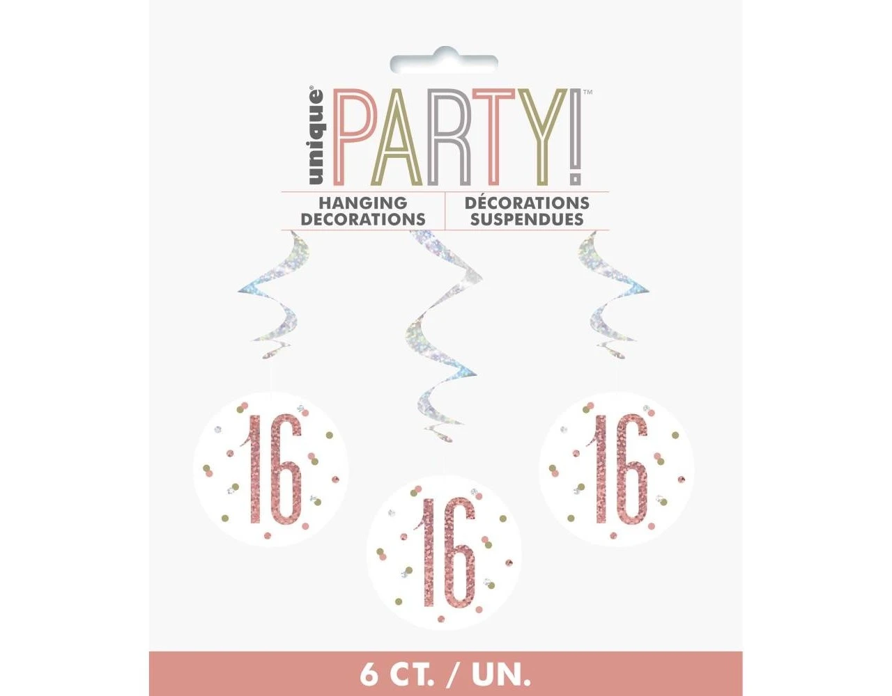 Verpakkingsinhoud: Hangdecoratie 16 Jaar Rose Goud 81cm 6st