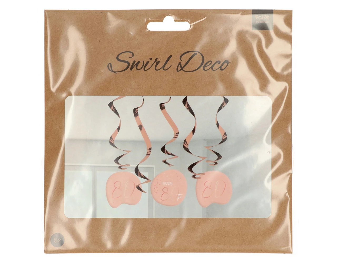 Hangdecoratie Elegant Lush Blush 80 Jaar – 5 stuks. Inhoud: 5 stuks hangdecoratie. Kleur: Roze. Bijvoorbeeld te gebruiken tijdens de volgende feestgelegenheid/feestgelegenheden: Verjaardag, Jubileum. Afmetingen van dit artikel: 75 x 14 cm. Het artikel is gemaakt van papier.