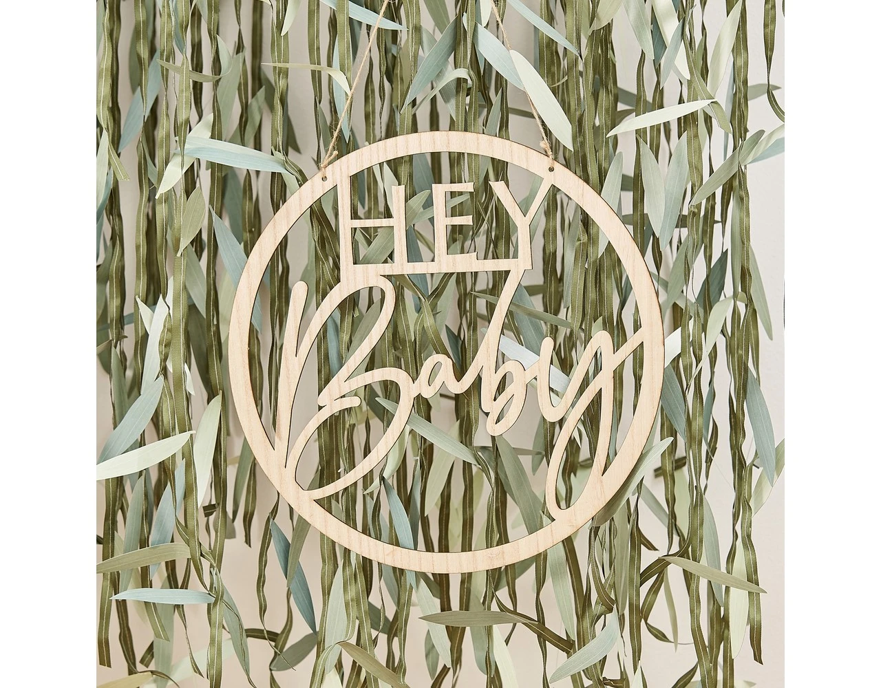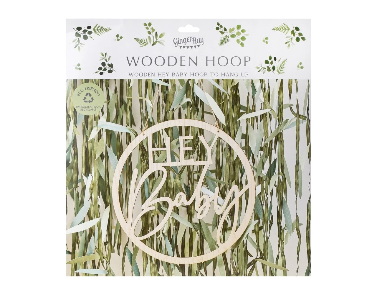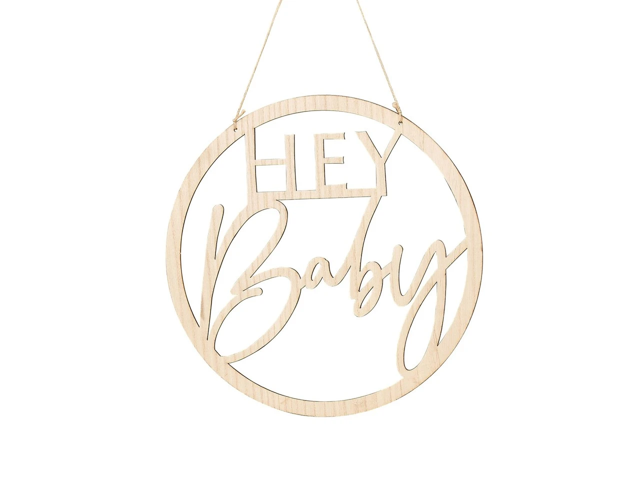 Houd het natuurlijk met onze milieuvriendelijke decoraties voor babyshowers ! Deze houten Hey Baby hoepel is een prachtig genderneutraal babyshowerbord dat bij elk thema past!