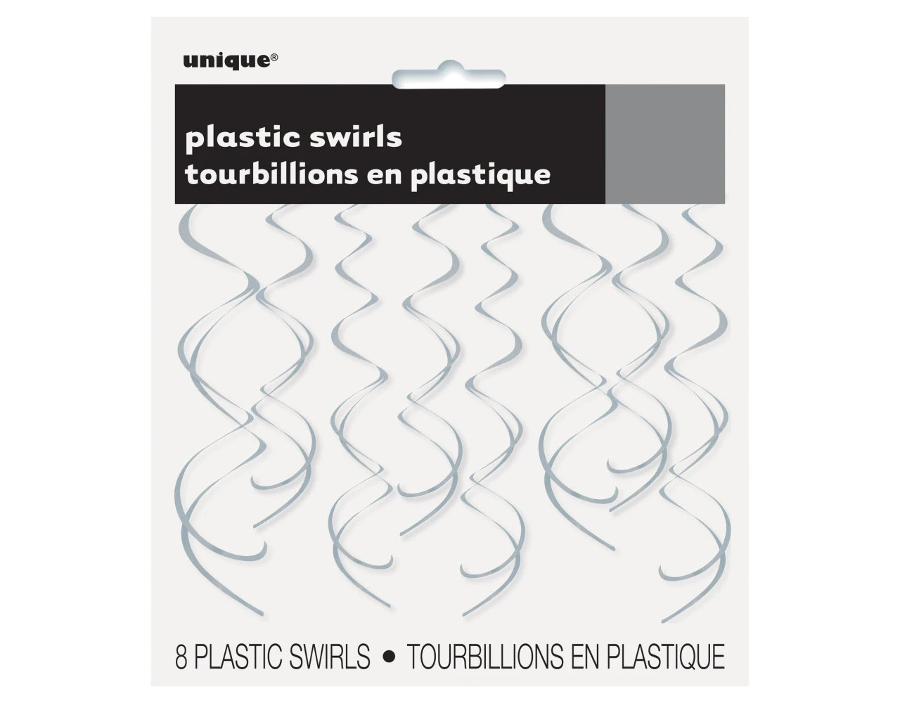 Verpakkingsinhoud: Zilveren Swirl Hangdecoratie 8 delig