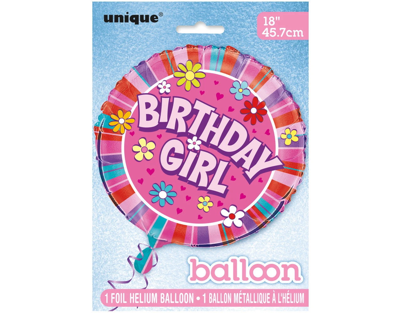 Verpakkingsinhoud: Helium Ballon Birthday Girl Bloemen 45cm leeg