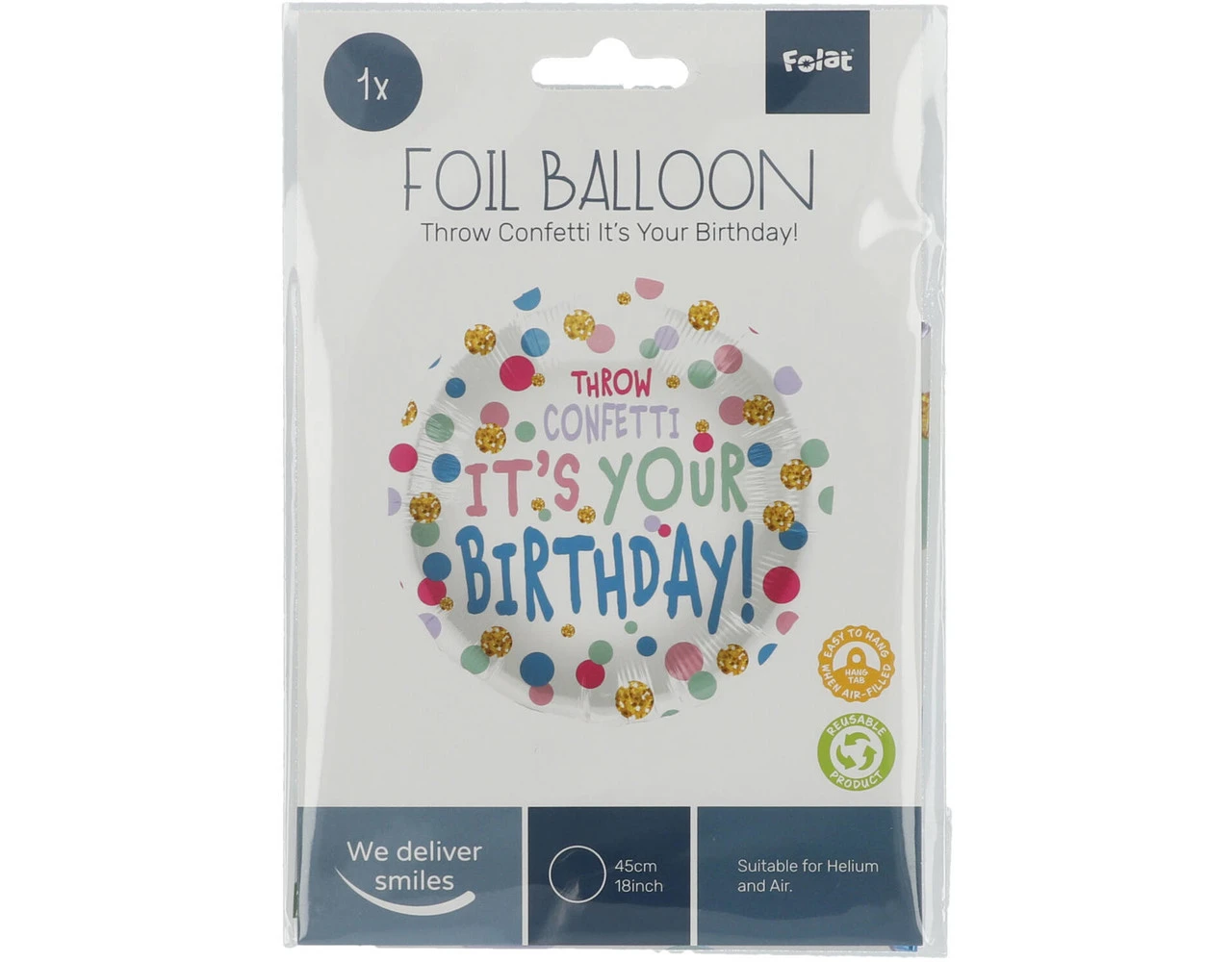Folieballon Verjaardag Throw Confetti – 45 cm. Inhoud: 1 folieballon. Kleur: Meerkleurig. Bijvoorbeeld te gebruiken tijdens de volgende feestgelegenheid/feestgelegenheden: Verjaardag en Kinderfeestje. Deze folieballon is 18 inch/45 cm. Het artikel is gemaakt van folie.