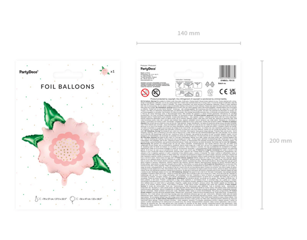 Folieballon Bloem, mix van kleuren, afmeting voor opblazen ca. 70 x 57 cm, afmeting na opblazen ca. 56 x 47 cm. Op te blazen met lucht en helium. Set bevat een rietje.