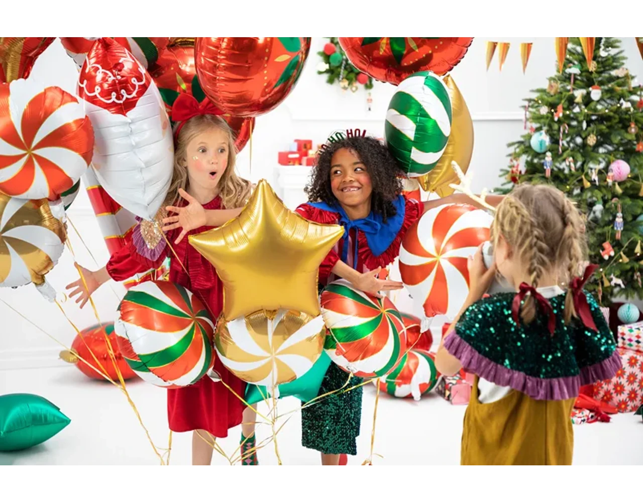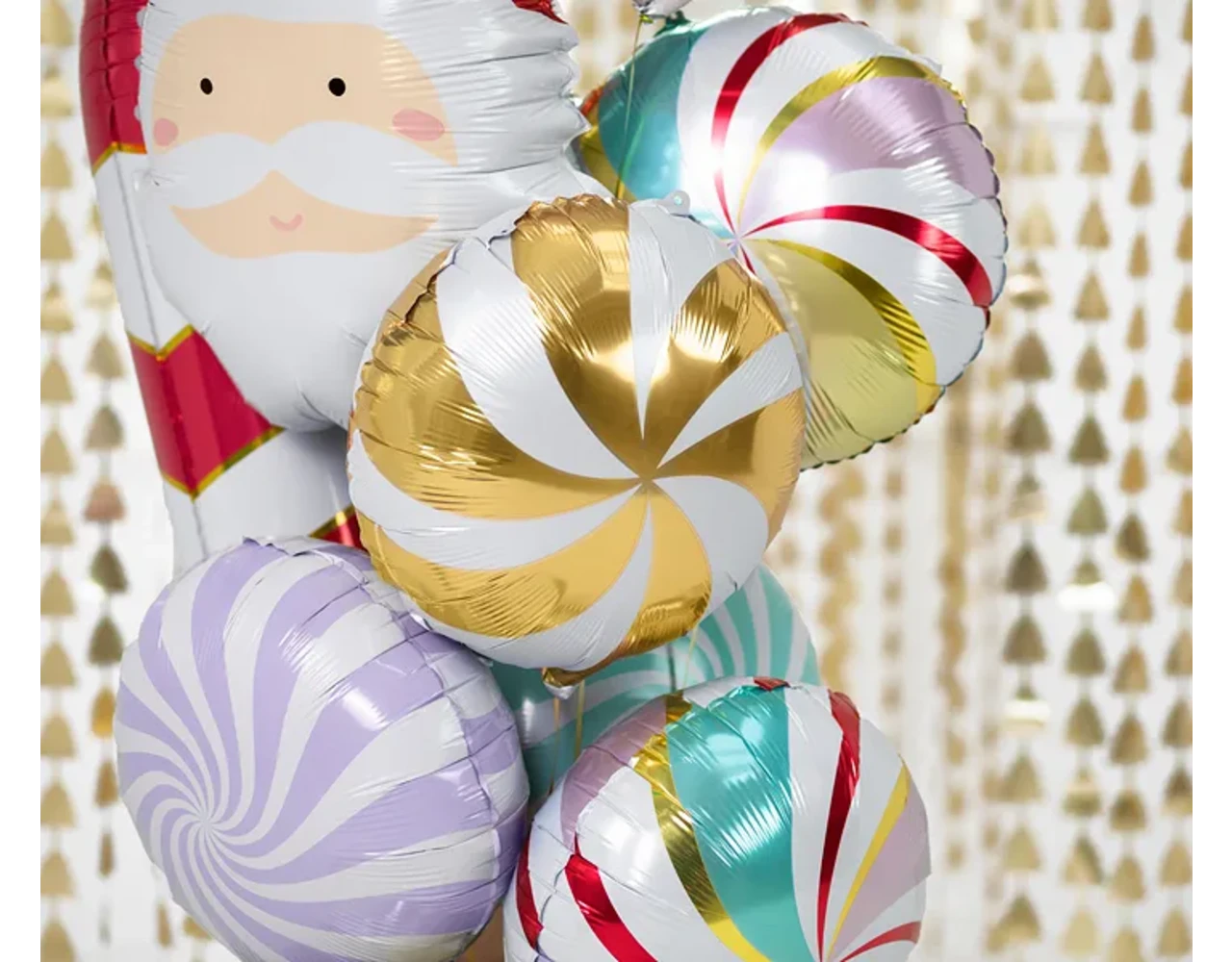 Matte folieballon Candy in witte kleur met gouden satijnopdruk, diameter voor opblazen ca. 45 cm (18”), diameter na opblazen ca. 35 cm (14”). Opblazen met helium en lucht. Opblazen met helium en lucht.