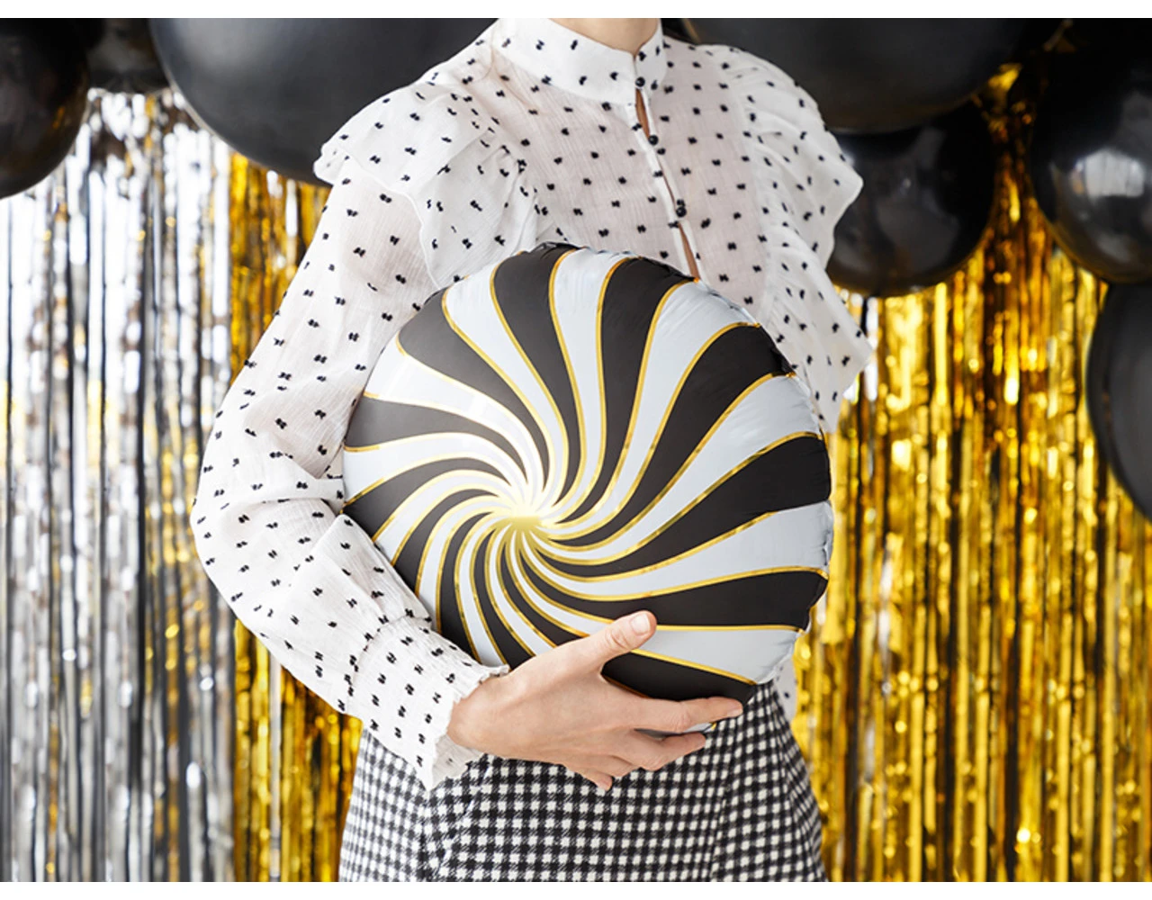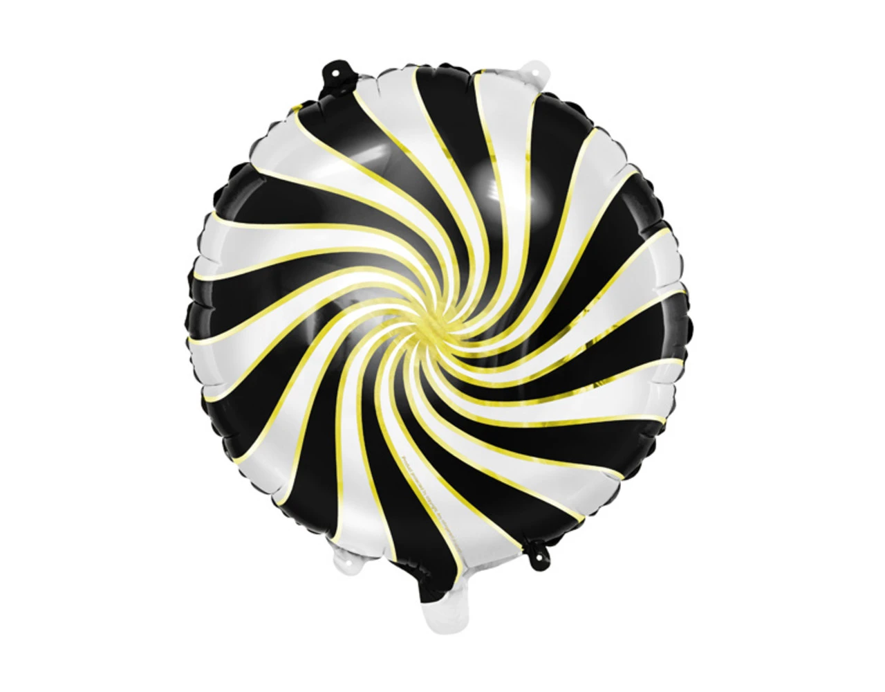 Glanzende folieballon Candy in witte kleur met zwarte opdruk, diameter voor opblazen ca. 45 cm (18”), diameter ca. 35 cm (14”). Opblazen met helium en lucht.