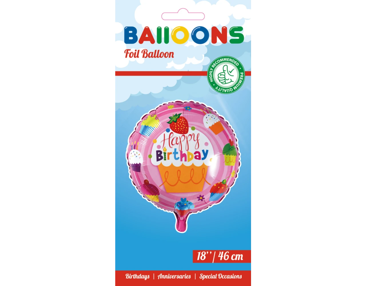 Verpakkingsinhoud: Helium Ballon Happy Birthday Cupcakes 45cm leeg