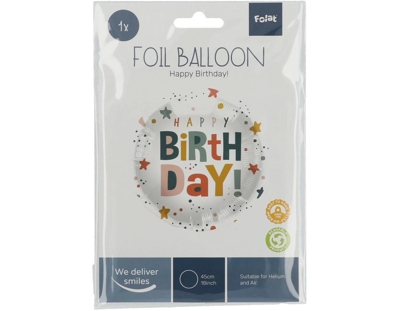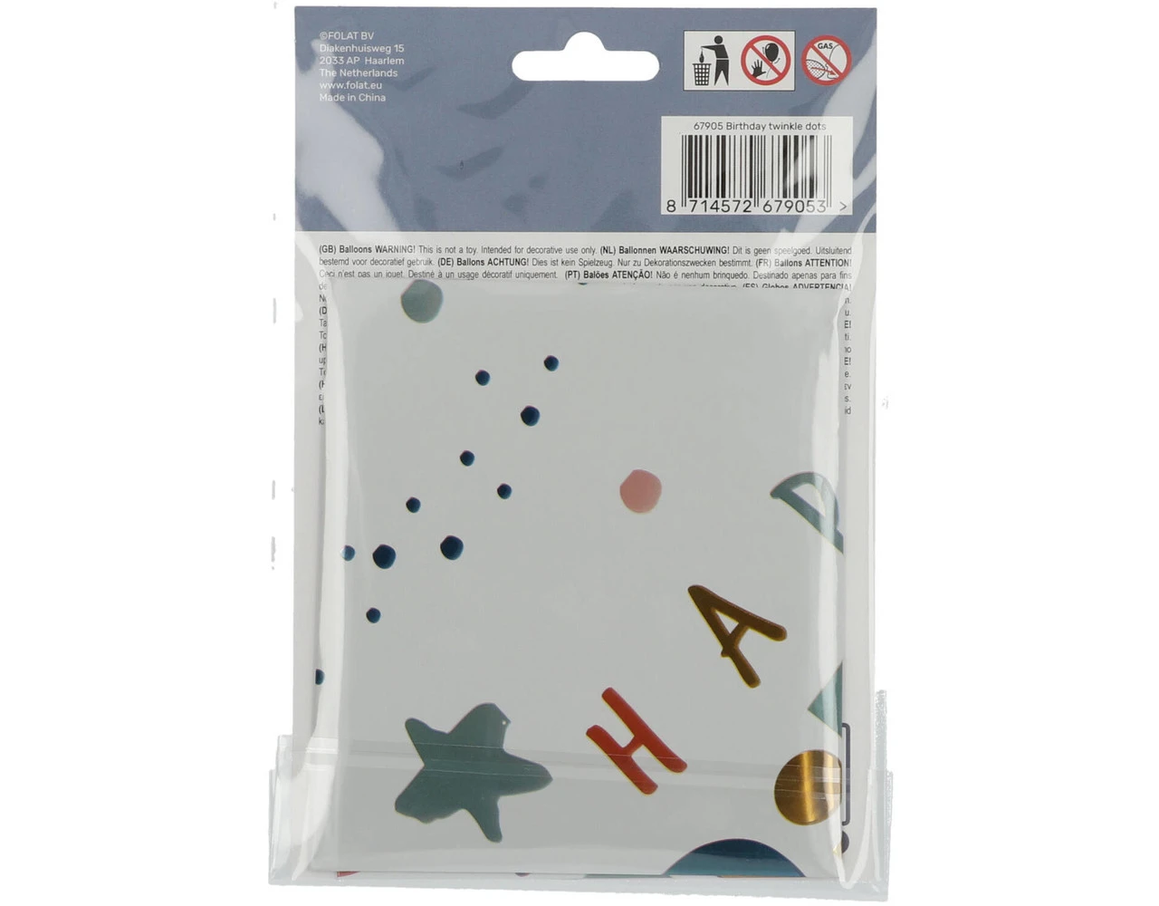 Folieballon Verjaardag Twinkle Dots – 45 cm. Inhoud: 1 folieballon. Kleur: Meerkleurig. Bijvoorbeeld te gebruiken tijdens de volgende feestgelegenheid/feestgelegenheden: Verjaardag en Kinderfeestje. Deze folieballon is 18 inch/45 cm. Het artikel is gemaakt van folie.