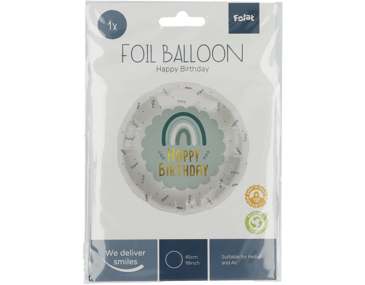 Folieballon Verjaardag Regenboog Blauw – 45 cm. Inhoud: 1 folieballon. Kleur: Blauw. Bijvoorbeeld te gebruiken tijdens de volgende feestgelegenheid/feestgelegenheden: Verjaardag en Kinderfeestje. Deze folieballon is 18 inch/45 cm. Het artikel is gemaakt van folie.
