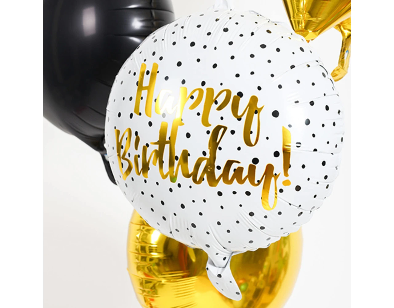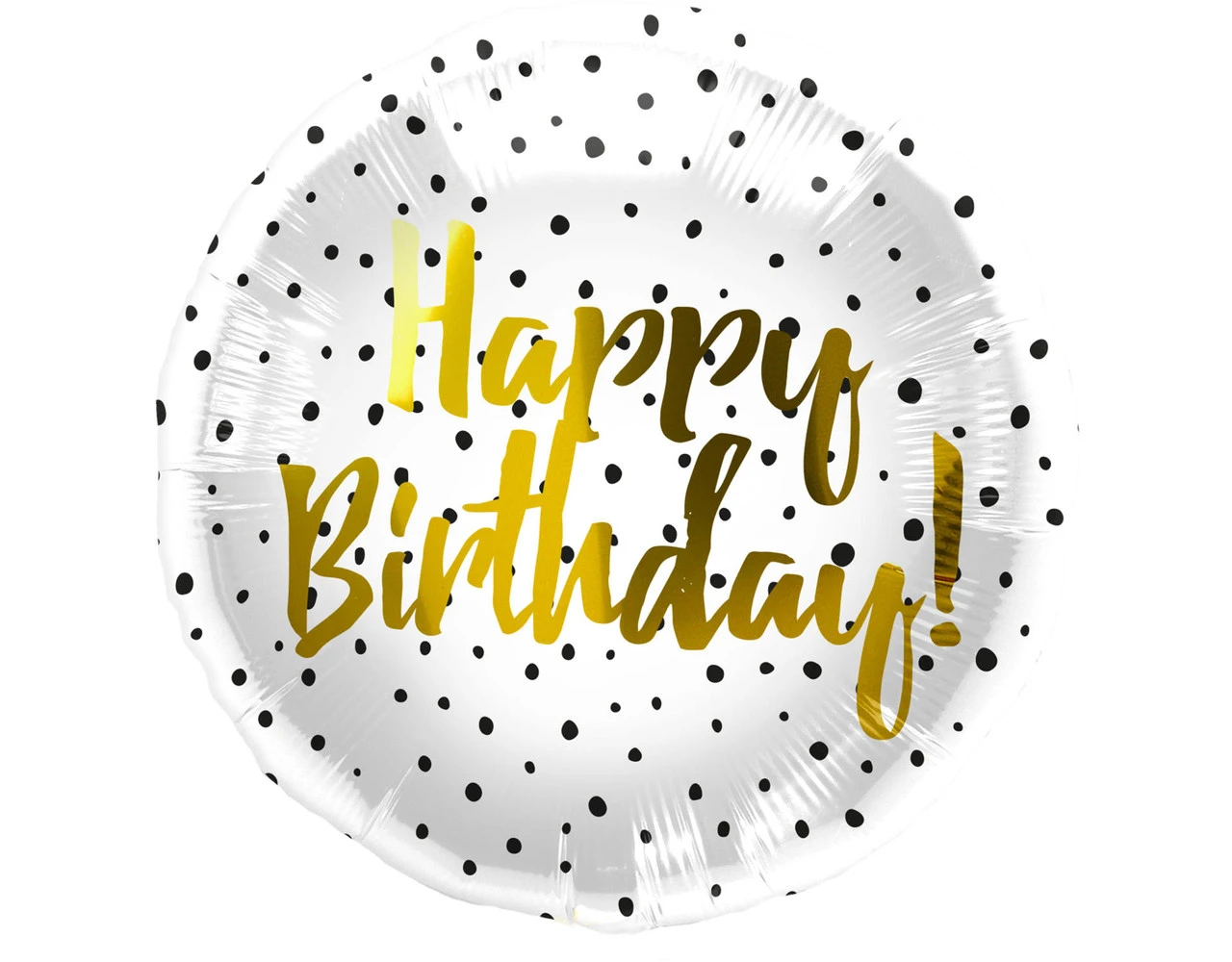 Folieballon Verjaardag Stippen Zwart – 45 cm. Inhoud: 1 folieballon. Kleur: Zwart-wit. Bijvoorbeeld te gebruiken tijdens de volgende feestgelegenheid/feestgelegenheden: Verjaardag en Kinderfeestje. Deze folieballon is 18 inch/45 cm. Het artikel is gemaakt van folie.
