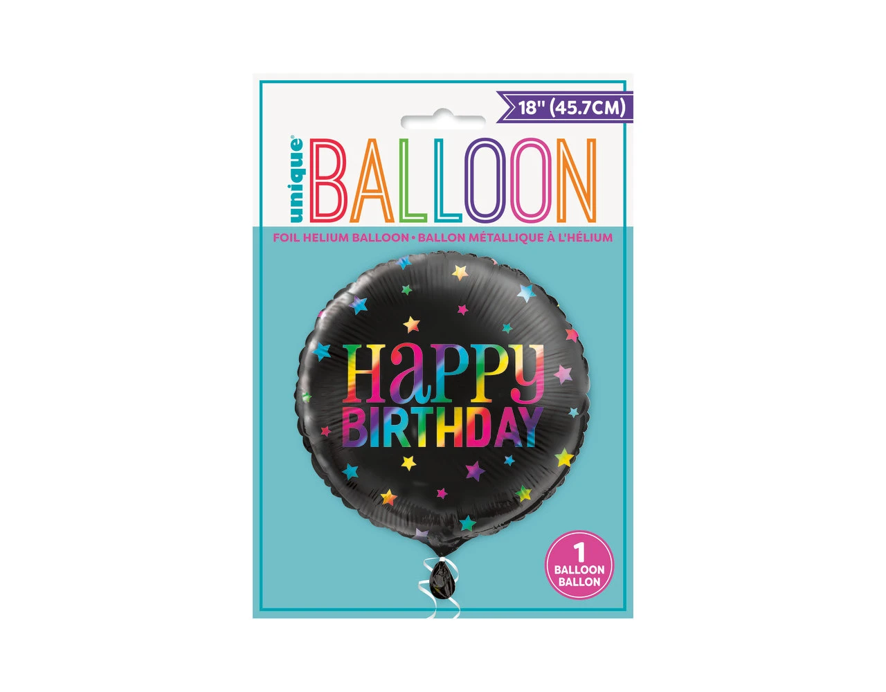 Verpakkingsinhoud: Helium Ballon Happy Birthday Zwart Regenboog 45cm leeg