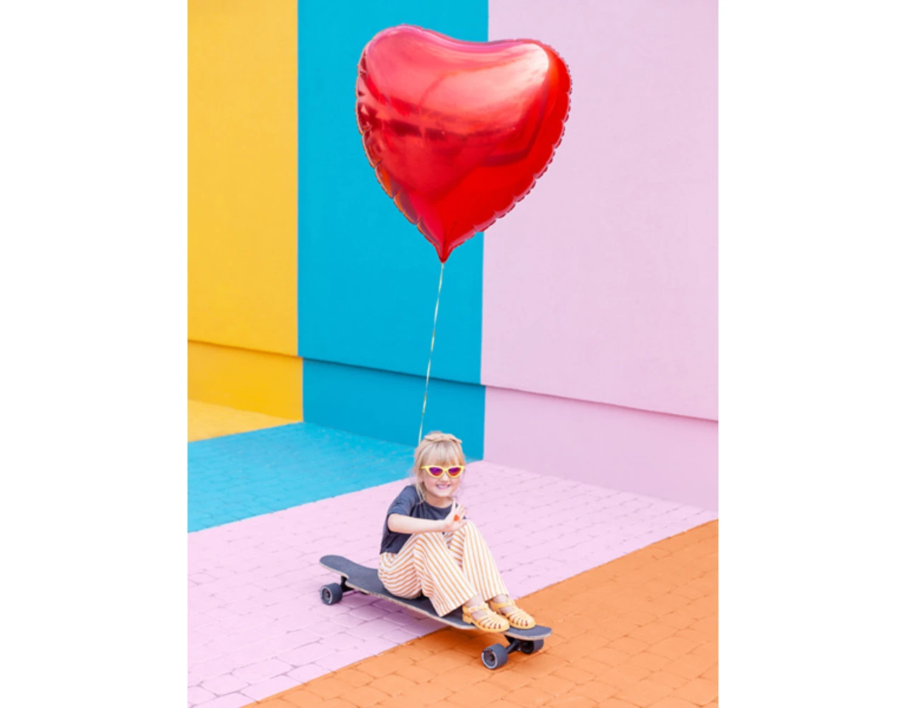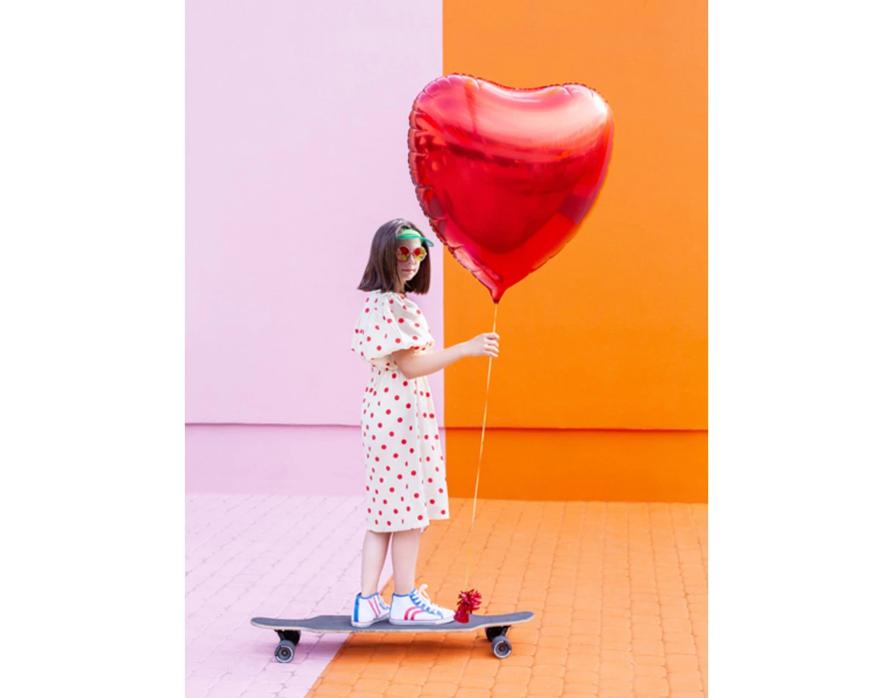 Metallic folie ballon in de vorm van een hart in rode kleur, afmeting ca. 72 x 73 cm (28 x 28.5 ”)