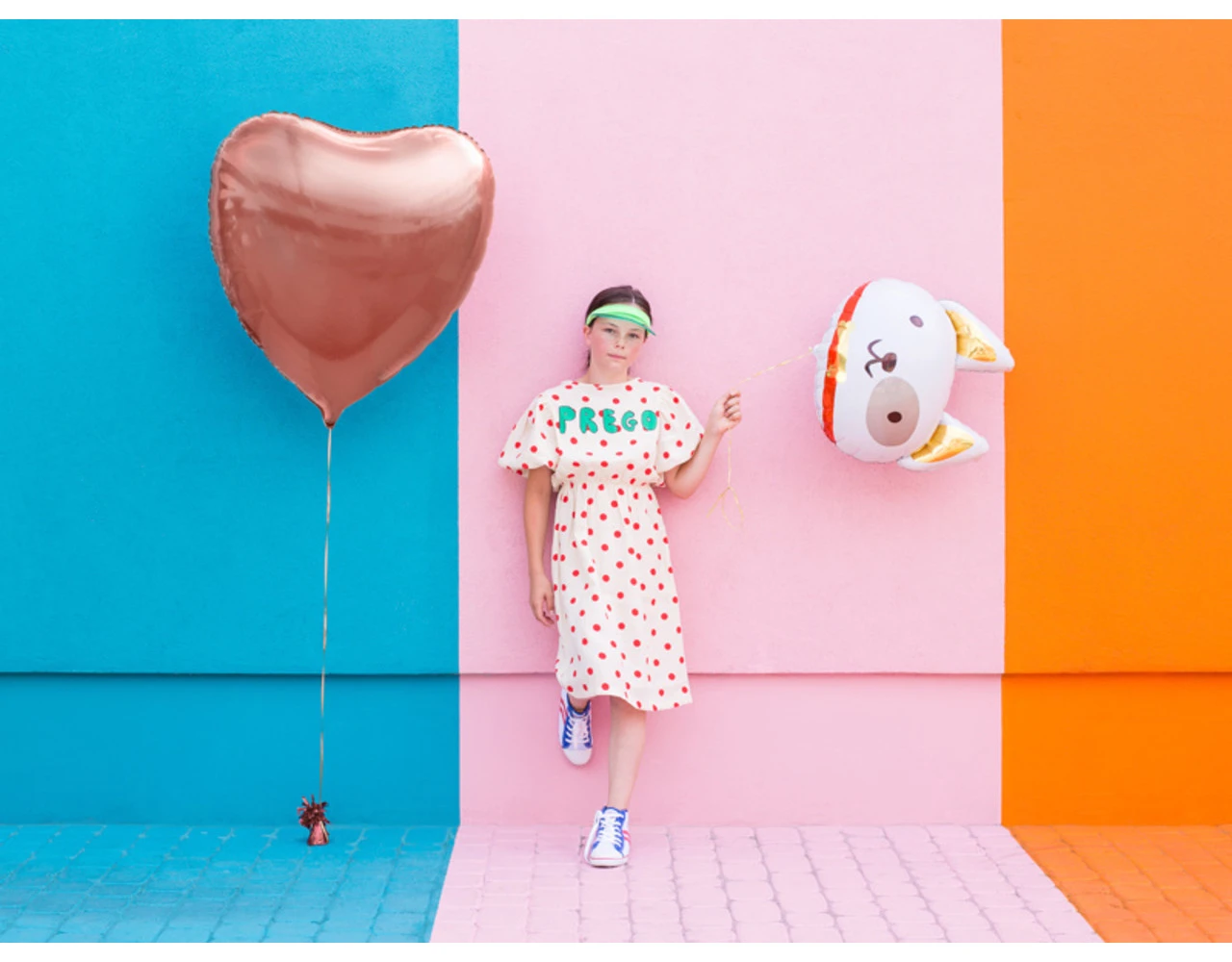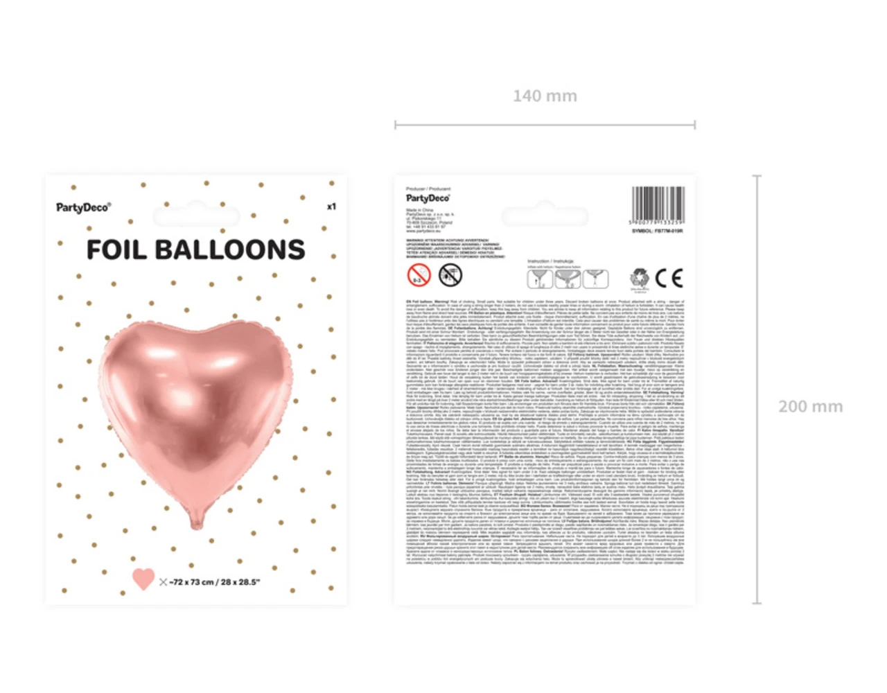Metallic folie ballon in de vorm van een hart in rosŽ goud kleur, afmeting ca. 72 x 73 cm (28 x 28.5 ”).