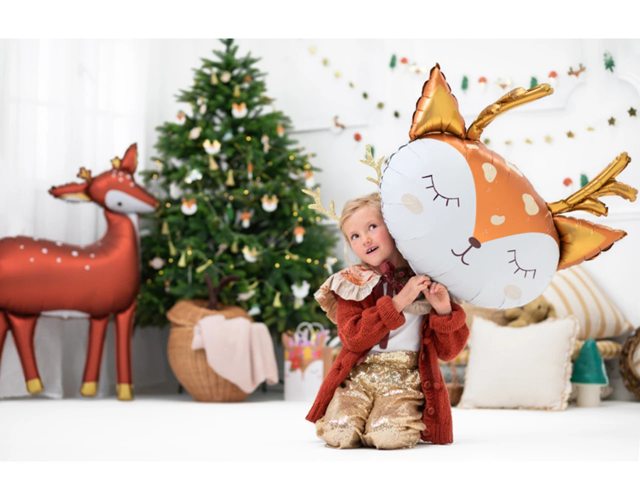 Folieballon Hert, mix van kleuren, afmeting na opblazen ca. 73 x 64 cm (28,5 x 25”). Opblazen met helium en lucht.