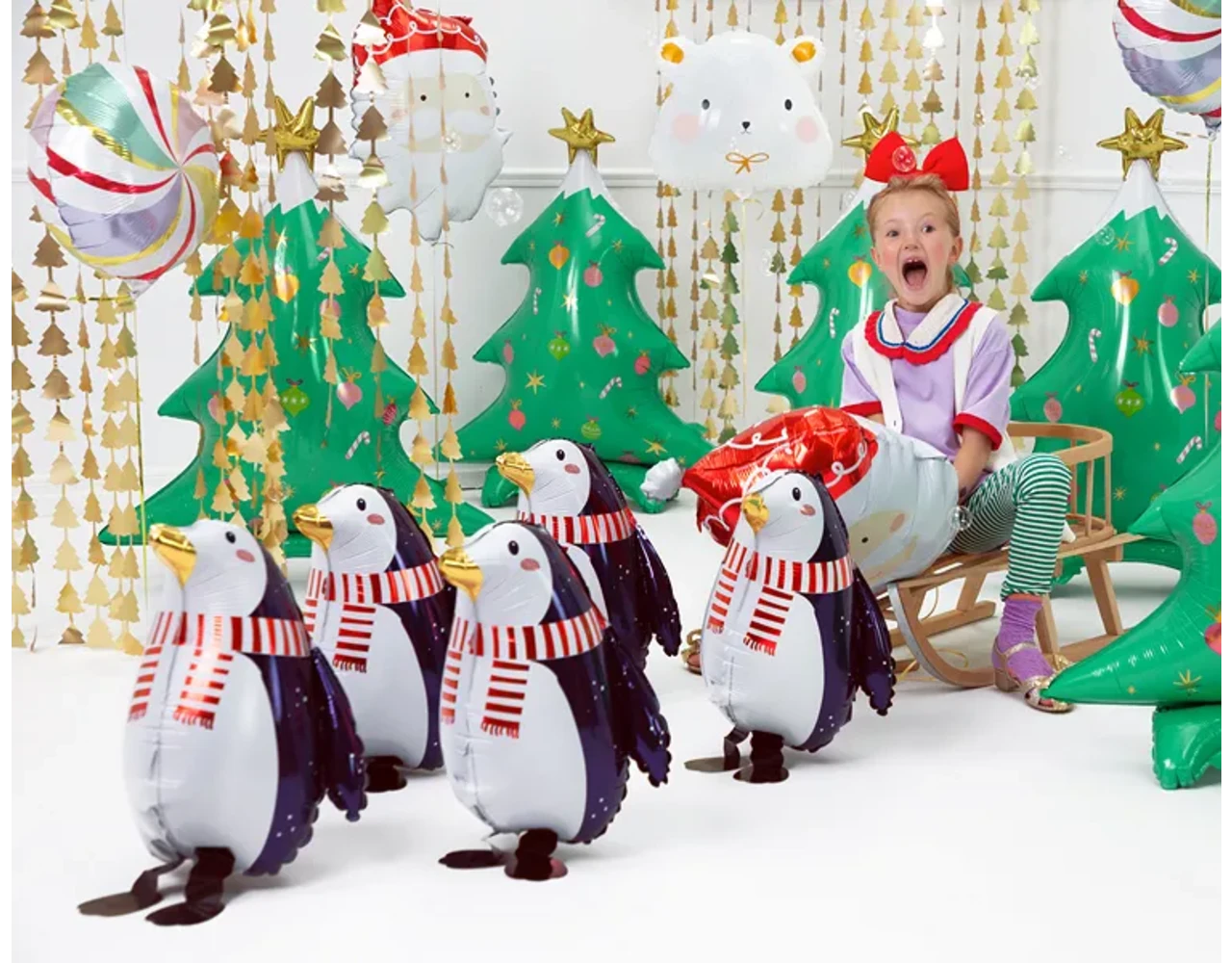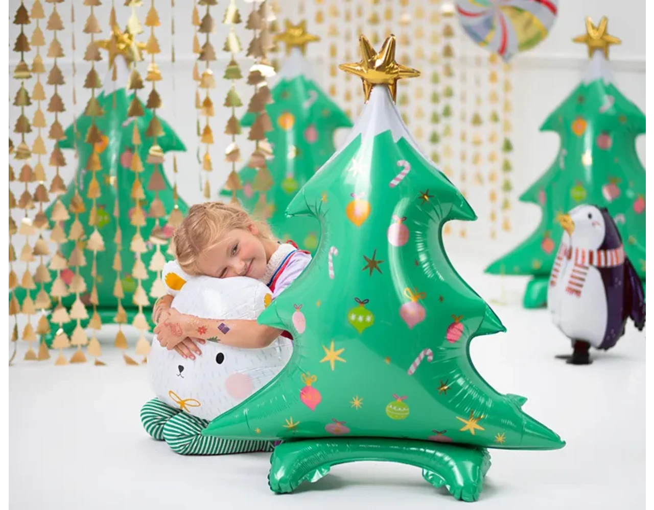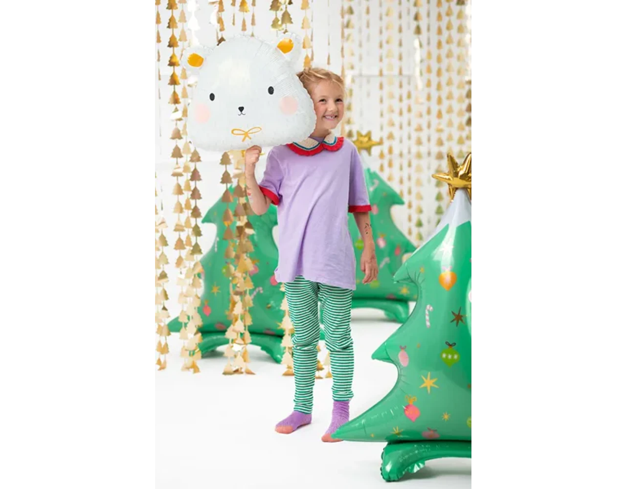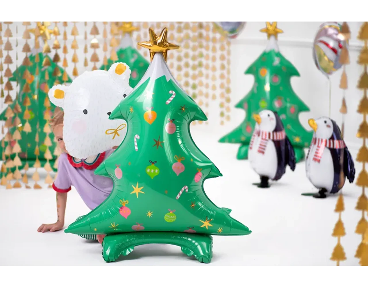 Matte folie ballon IJsbeer in witte kleur met kleurrijke en gouden satijn print, maat ca. ok. 51 x 45 cm (20 x 18 ”).