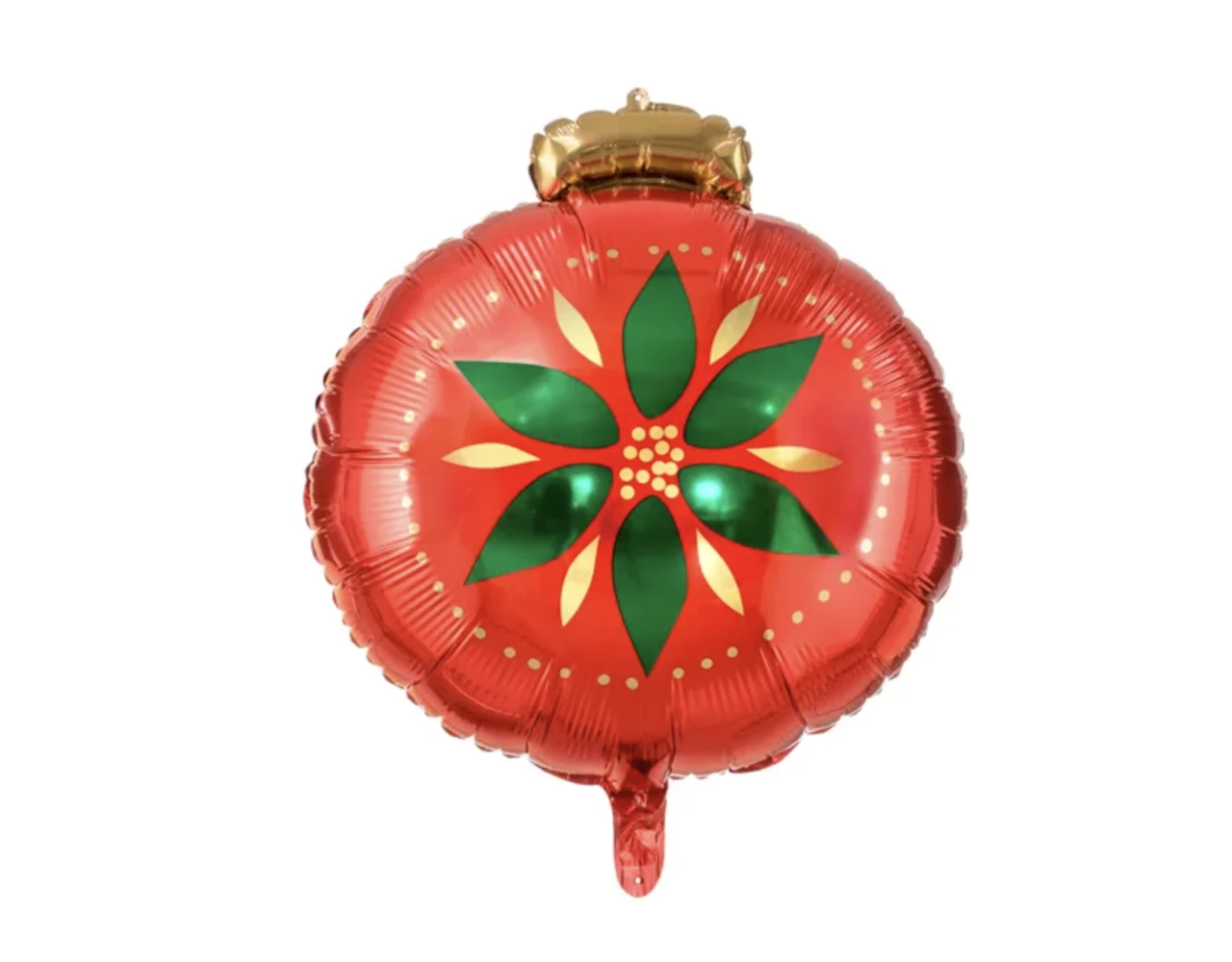 Matte folie ballon kerstbal in rode kleur met groen en goud metallic print, afmeting ca. 45 x 45 cm (18 x 18 ”).