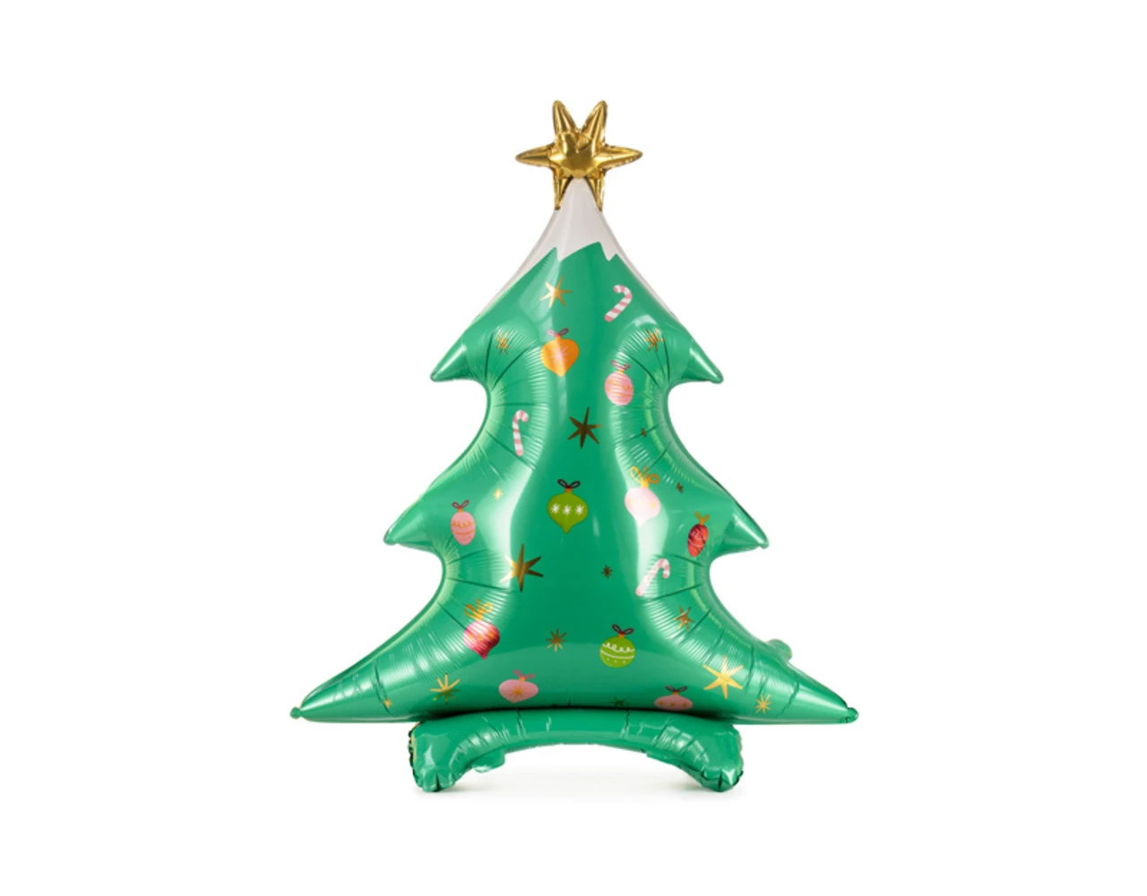 Matte staande folie ballon kerstboom met kleurrijke en gouden satijn print, maat ca. ok. 78 x 94 cm (30,5 x 37 ”).