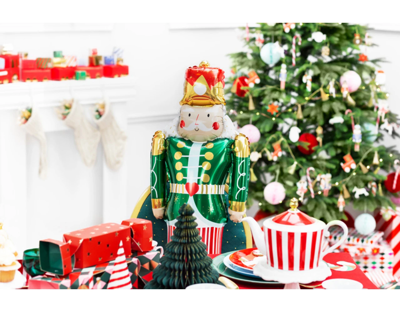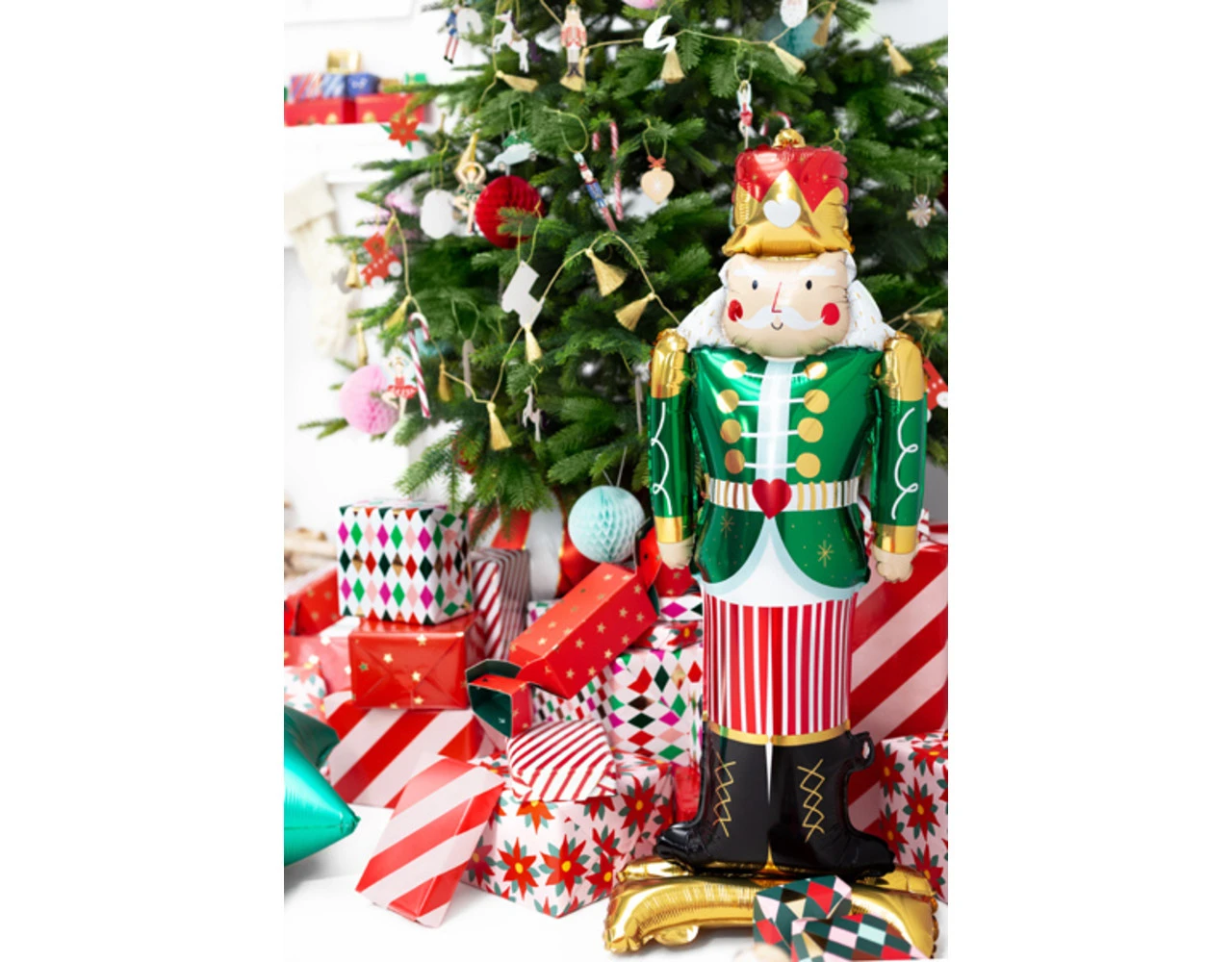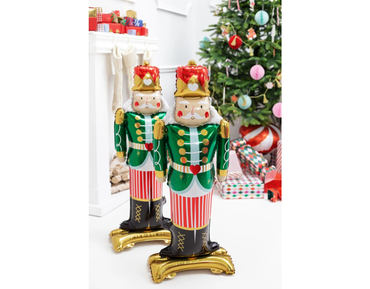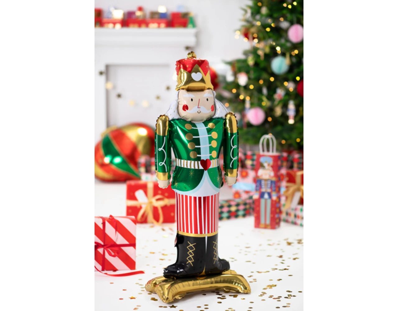 Matte staande folie ballon Notenkraker met kleurrijke en gouden satijn print, maat ca. ok. 34 x 85 cm (13,5 x 33,5 ”).