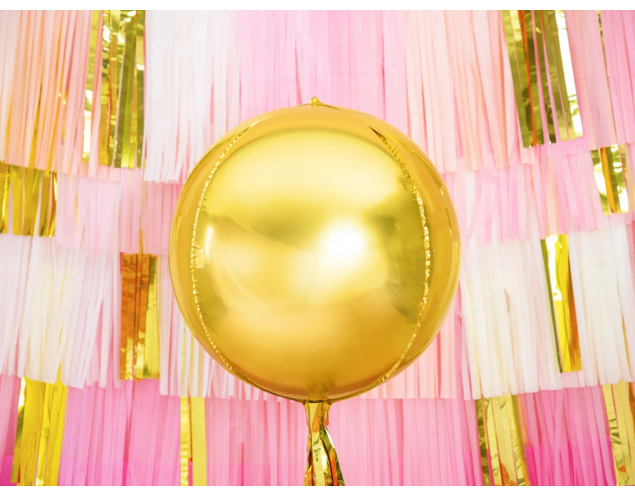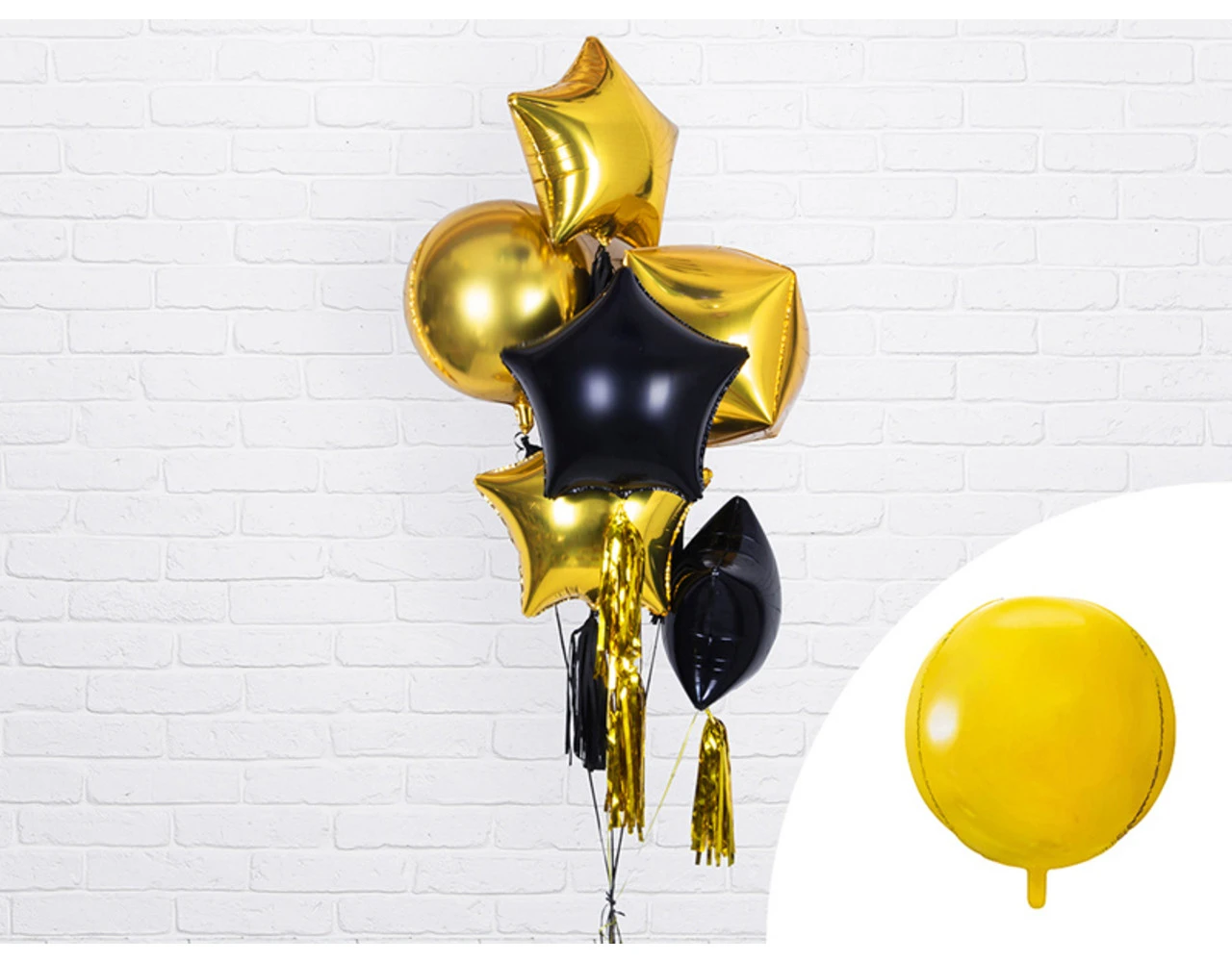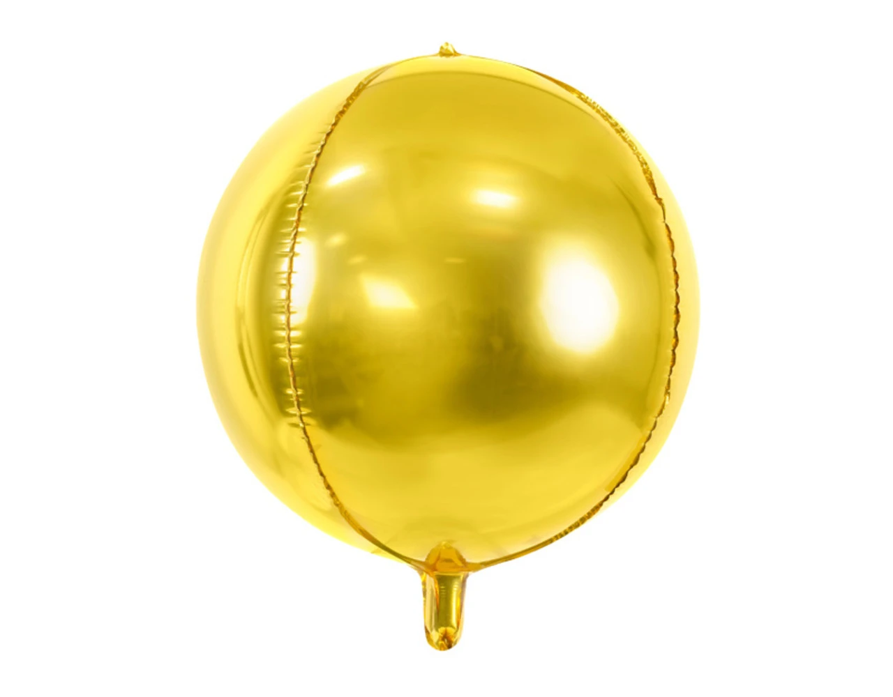 Metallic folie ballon Bal, goud, hoogte voor opblazen ca. 50 cm (20”), hoogte ca. 40 cm (16”). Opblazen met helium en lucht.