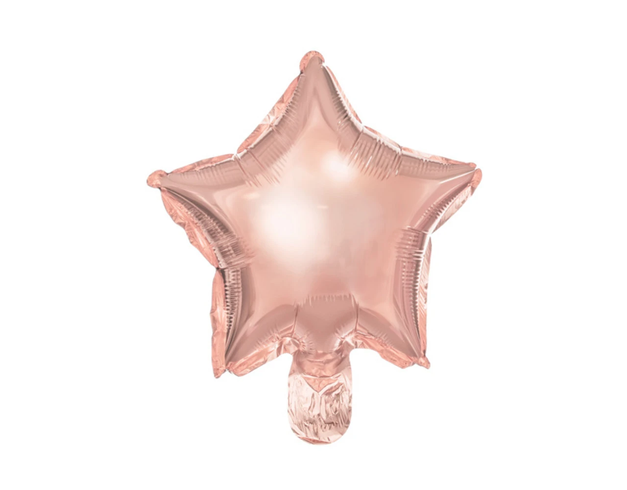Metallic folieballonnen in de vorm van sterren in rosŽgoudkleur, hoogte voor opblazen ca. 25 cm, hoogte na opblazen ca. 21 cm. Opblazen met lucht.