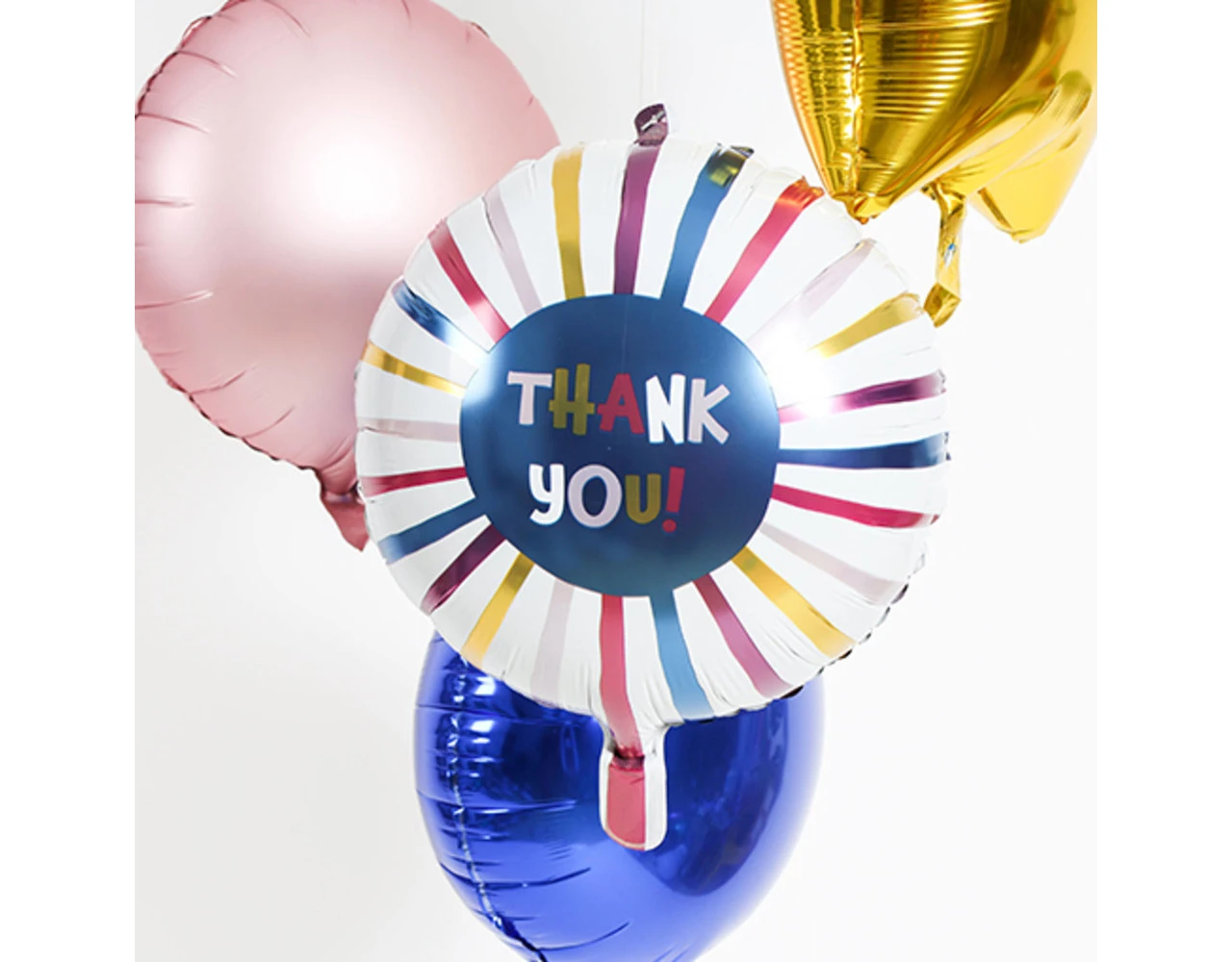 Folieballon Bedankt Strepen – 45 cm. Inhoud: 1 folieballon. Kleur: Meerkleurig. Bijvoorbeeld te gebruiken tijdens de volgende gelegenheid/gelegenheden: Bedankje. Deze folieballon is 18 inch/45 cm. Het artikel is gemaakt van folie.
