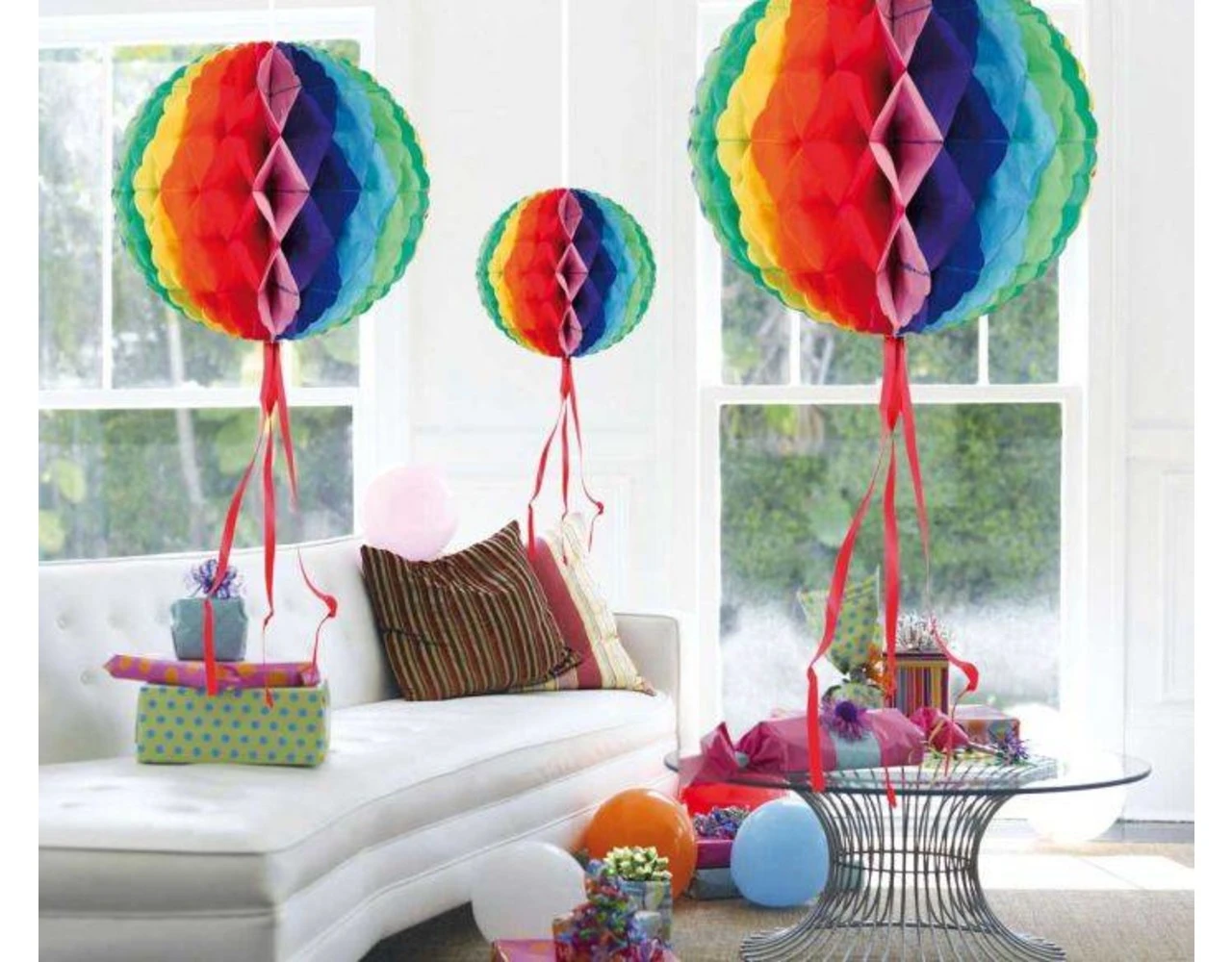 Honeycomb Bol Regenboog – 30cm – 3 stuks. Inhoud: 3 Honeycombs. Kleur: Meerkleurig. Bijvoorbeeld te gebruiken tijdens de volgende feestgelegenheid/feestgelegenheden: Themafeest, Verjaardag, Kinderfeestje. Deze decoratie is 30 cm. Een honeycomb is gemaakt van papier.