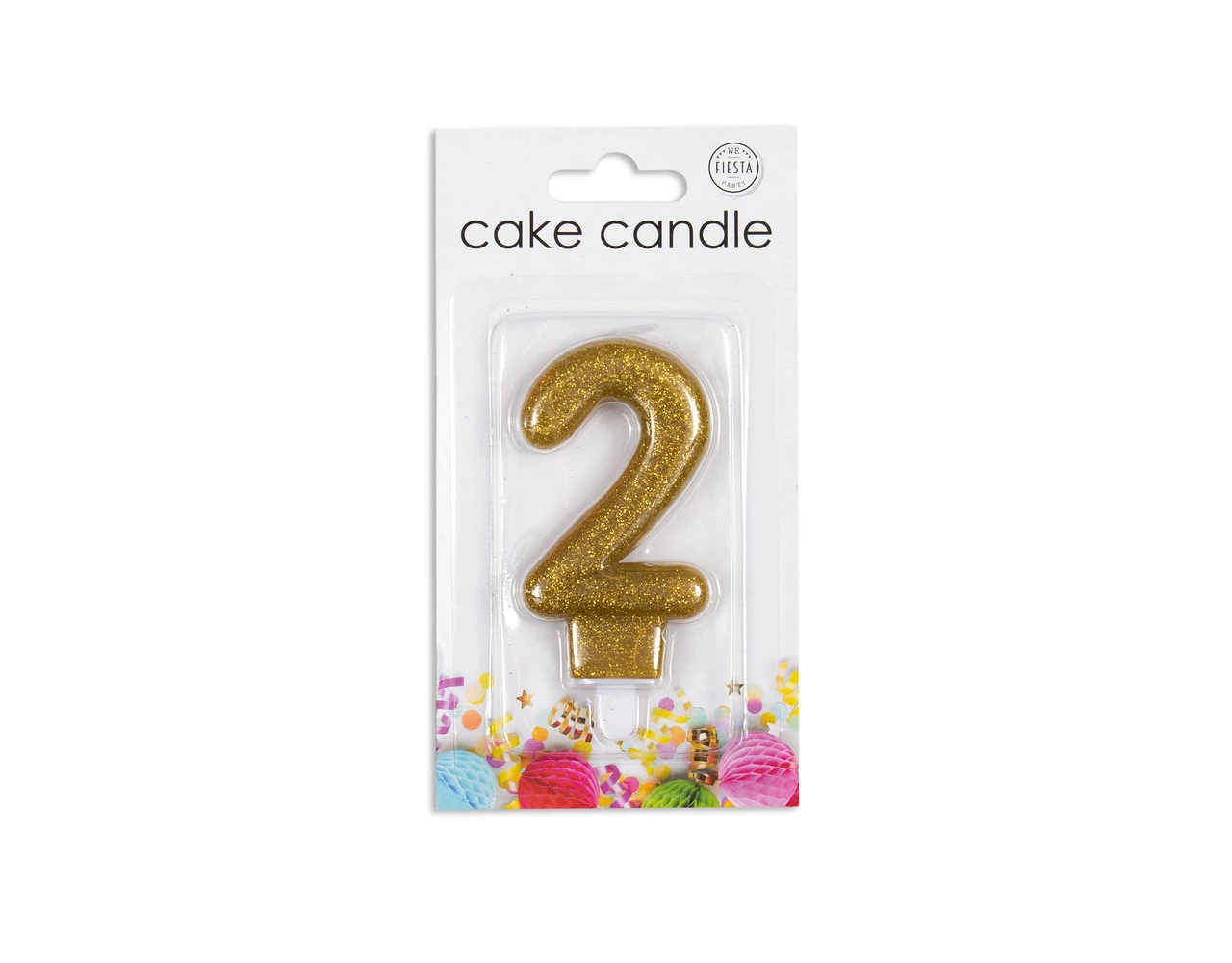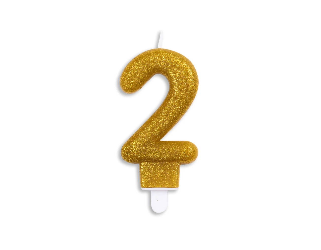 Verpakkingsinhoud: Kaars 2 Jaar Goud Glitter 7cm