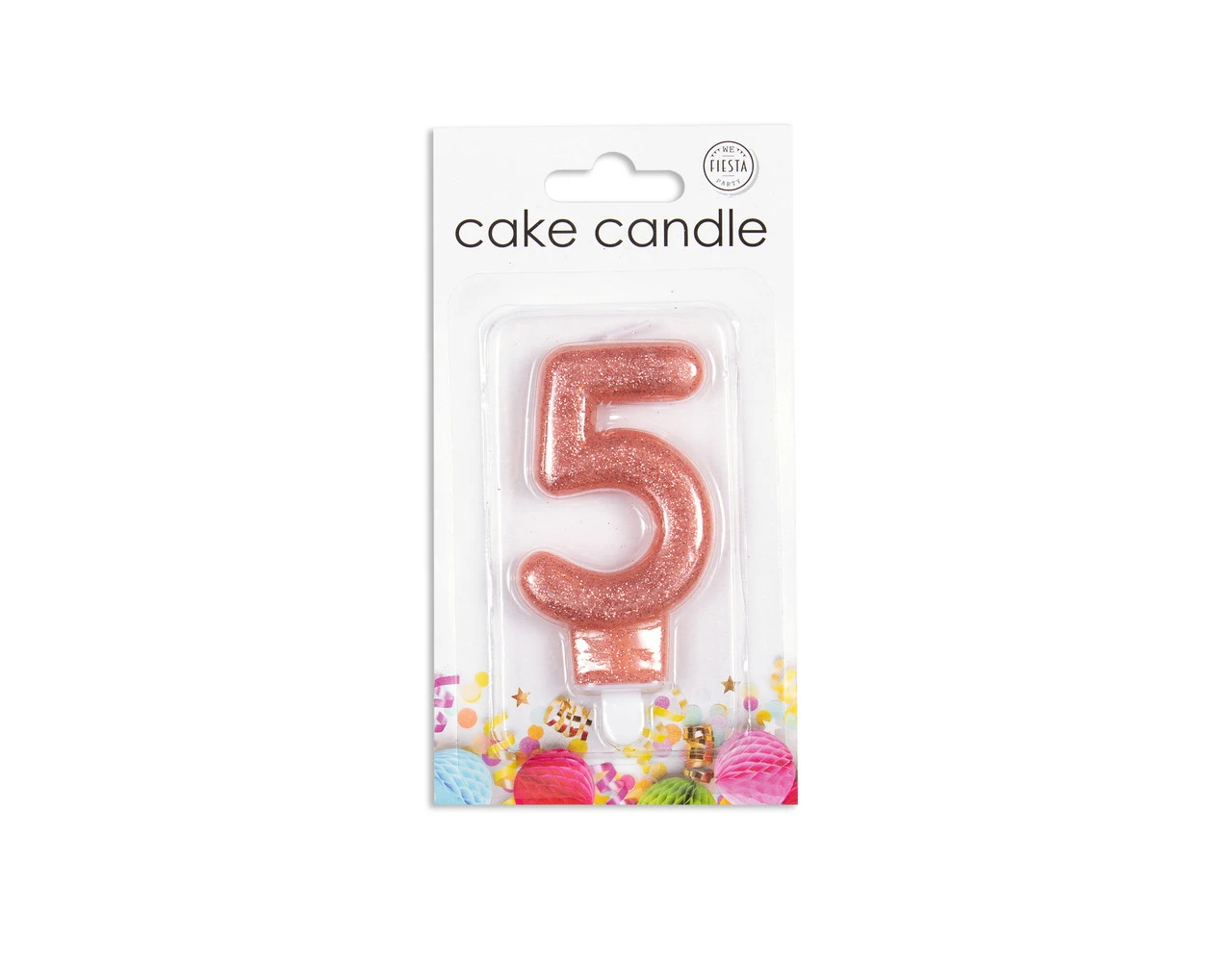 Verpakkingsinhoud: Kaars 5 Jaar Rose Goud Glitter 7cm