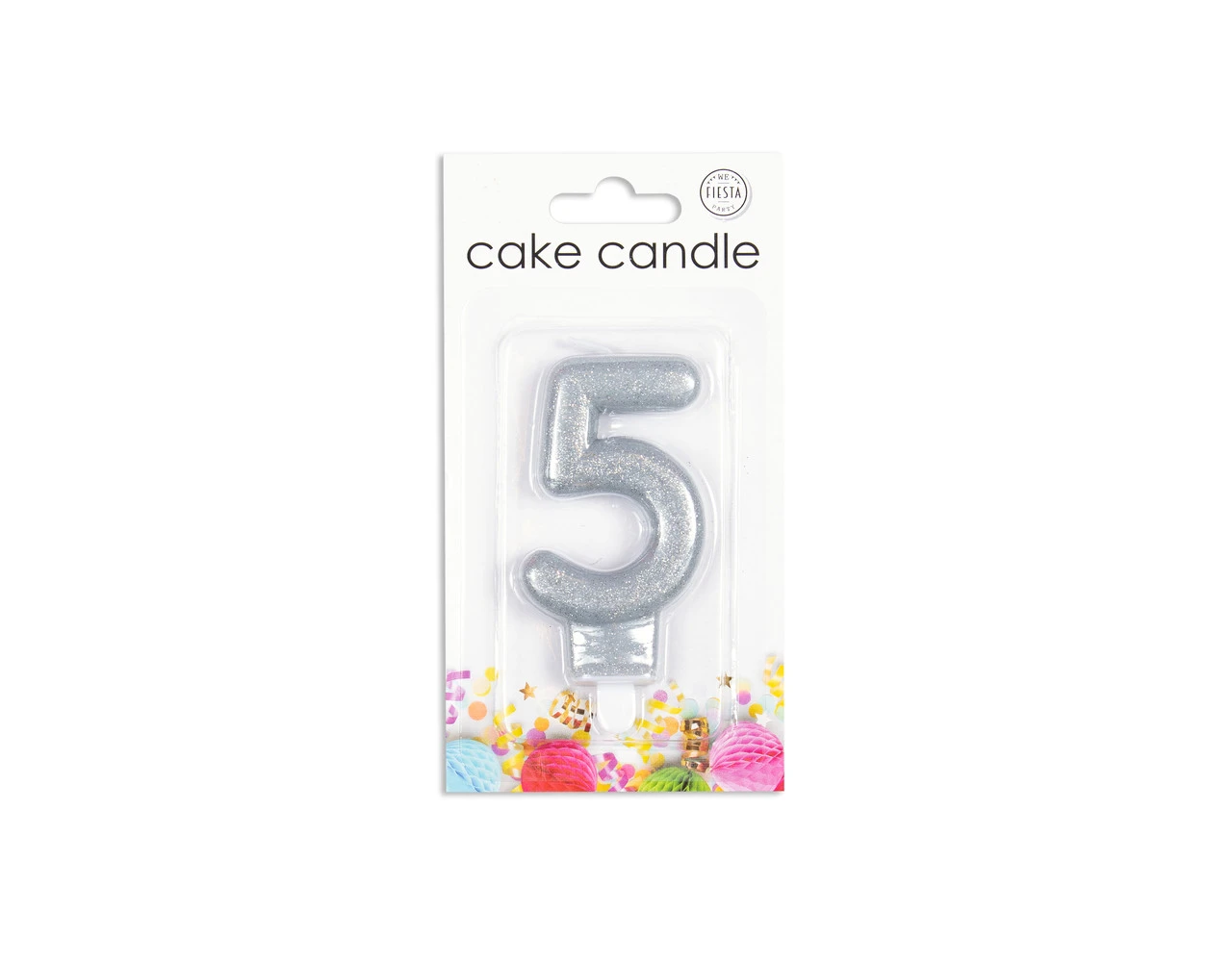 Verpakkingsinhoud: Kaars 5 Jaar Zilver Glitter 7cm