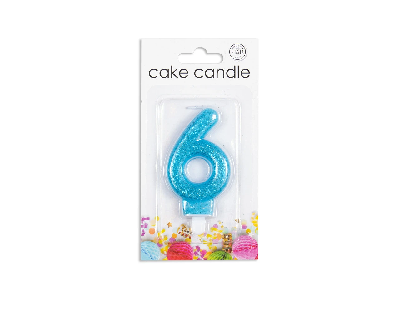 Verpakkingsinhoud: Kaars 6 Jaar Blauwe Glitter 7cm