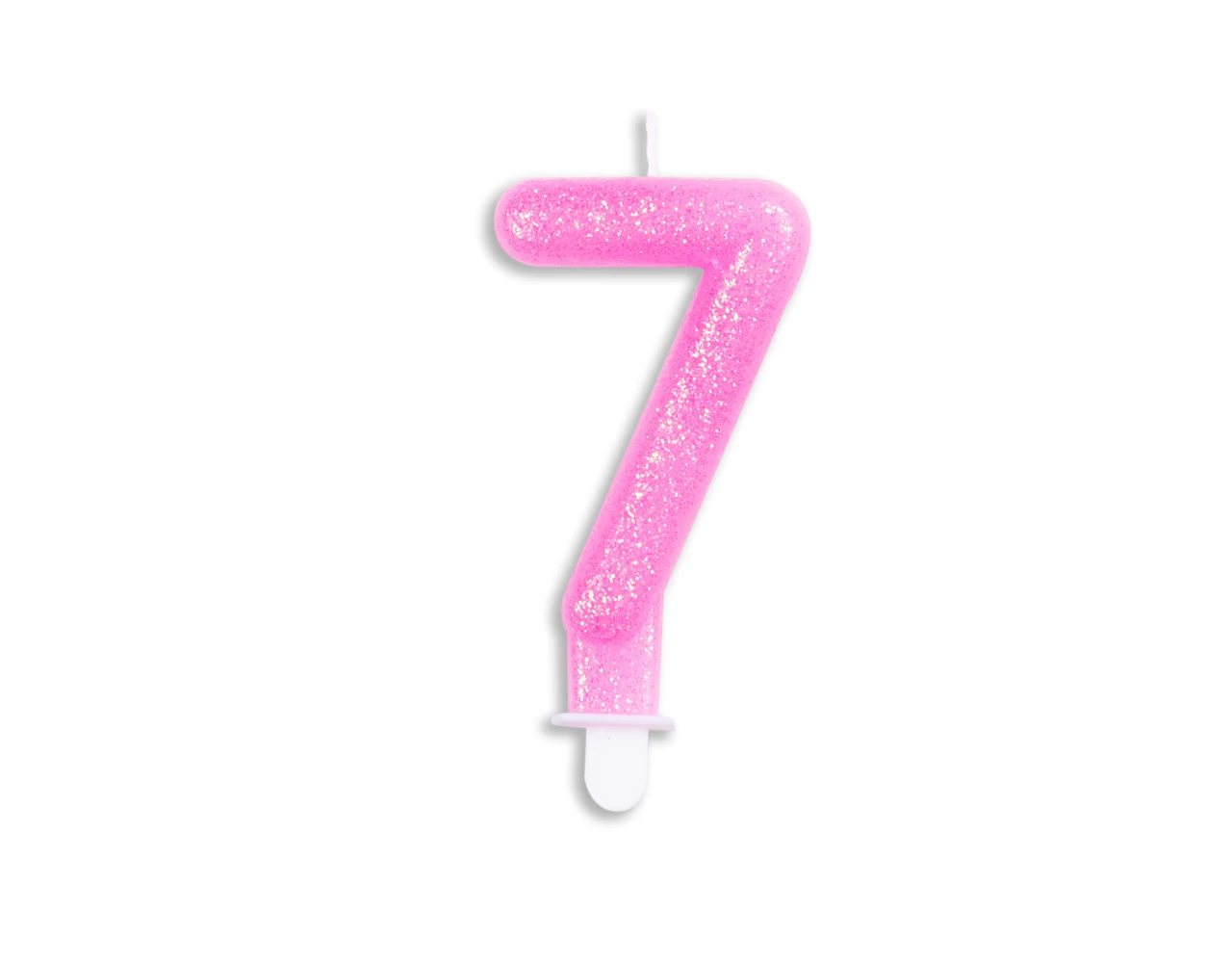 Verpakkingsinhoud: Kaars 7 Jaar Roze Glitter 7cm