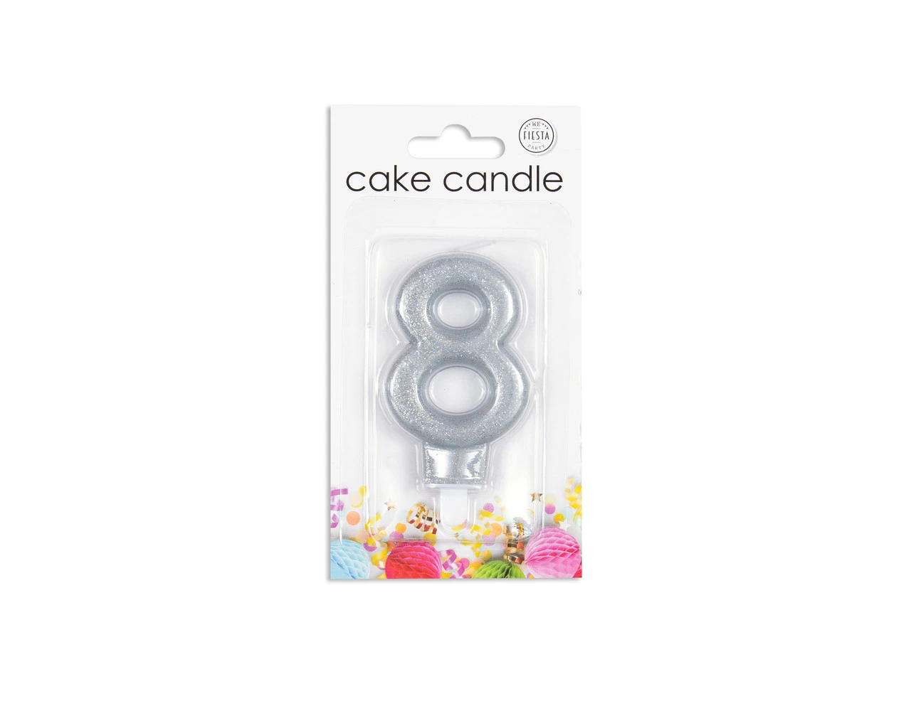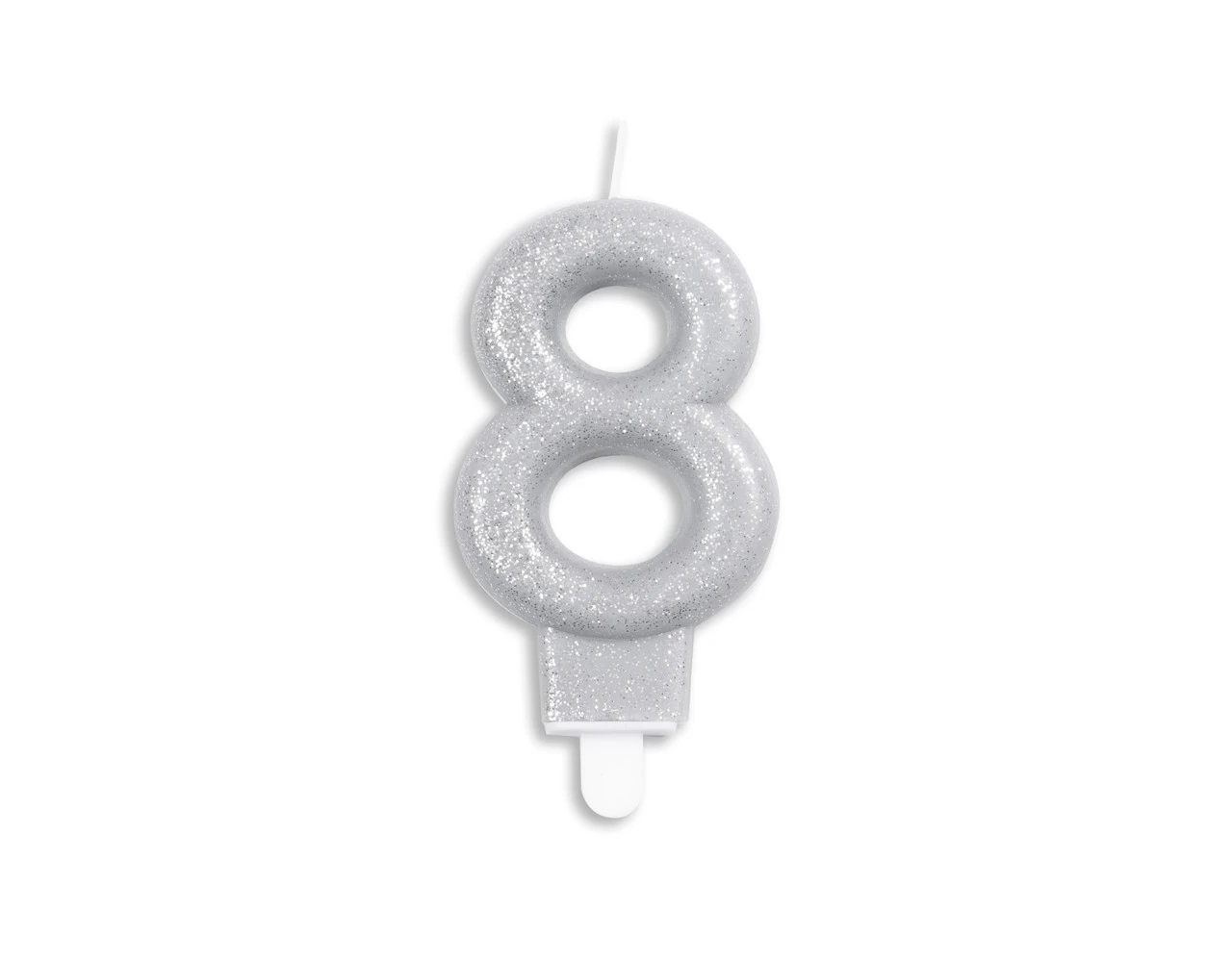 Verpakkingsinhoud: Kaars 8 Jaar Zilver Glitter 7cm